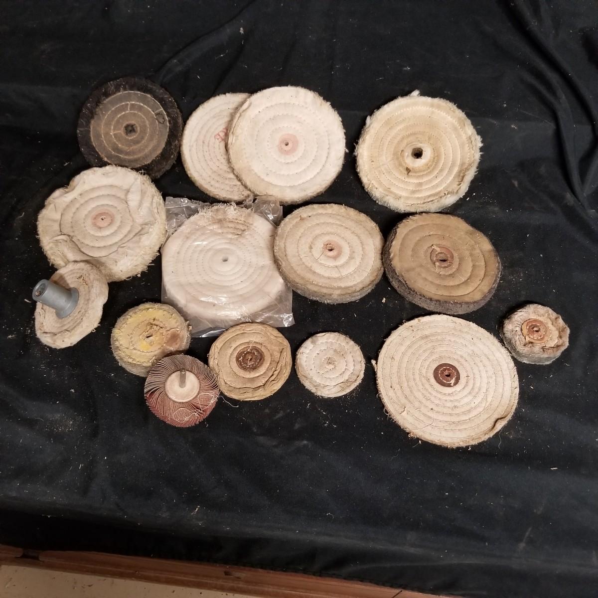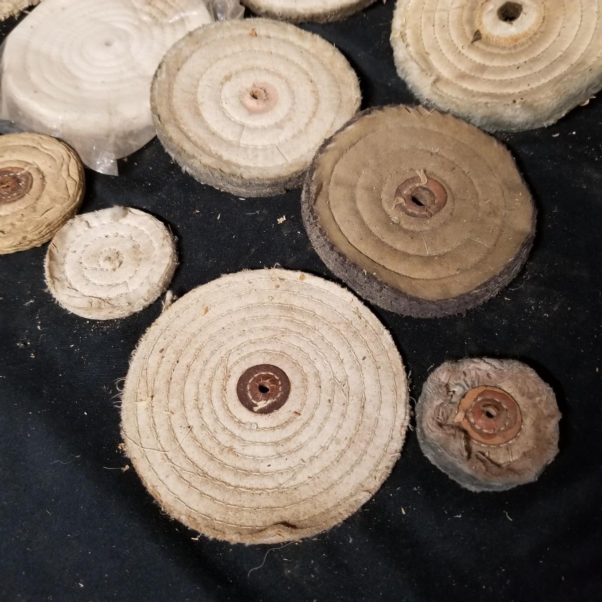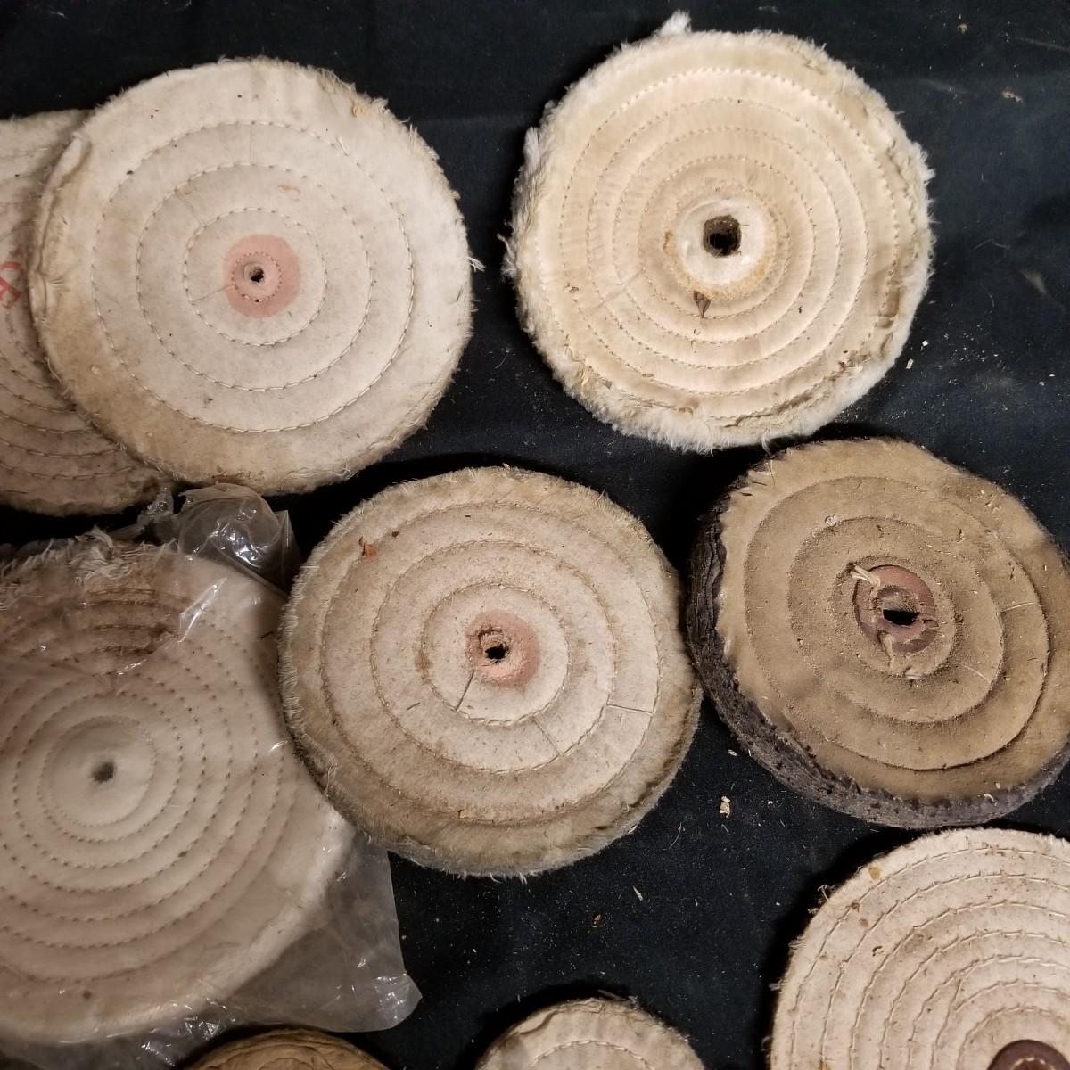 1/2 hp Dayton motor with buffer mandrel on end. Motor ran when tested. Inline switch, cord shows some fraying. Includes fourteen additional buffing wheels. Item is 15" x 7" x 9". Has safety shield on buffer end. Must be removed from workbench. Local pickup only.