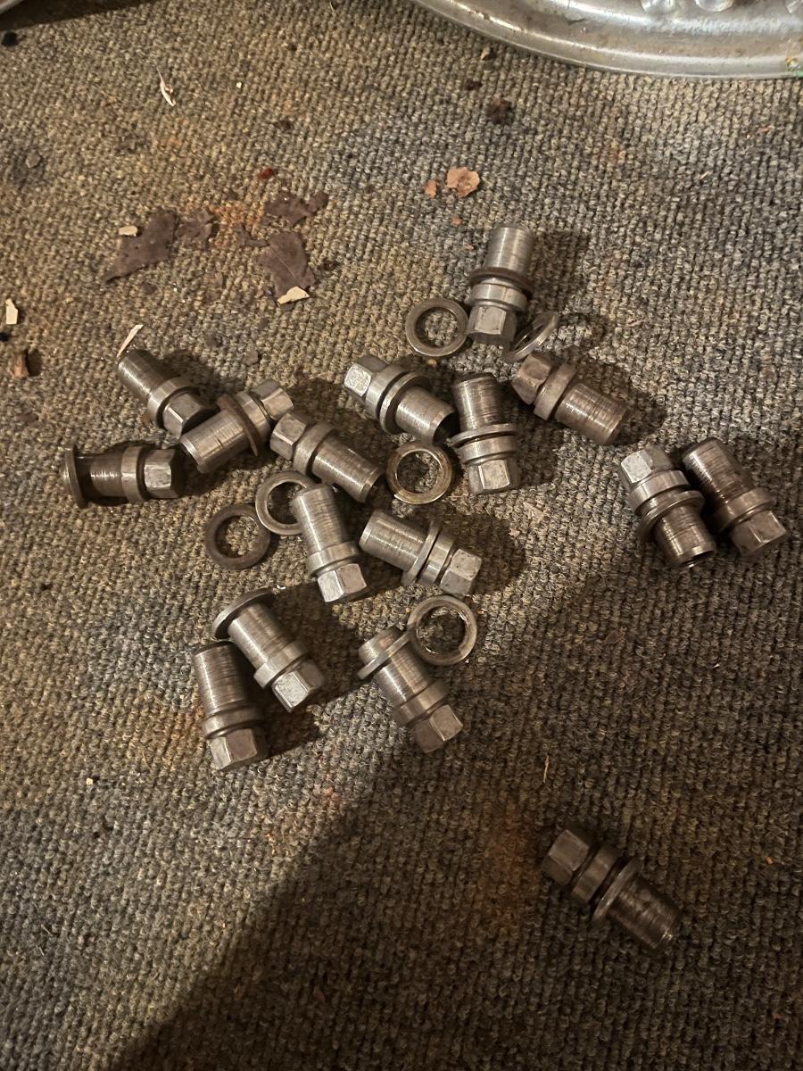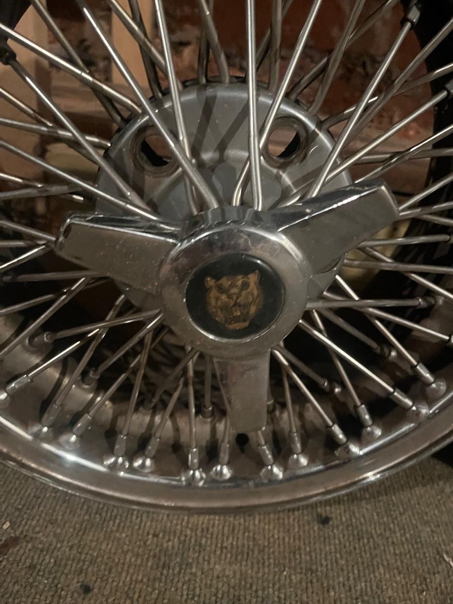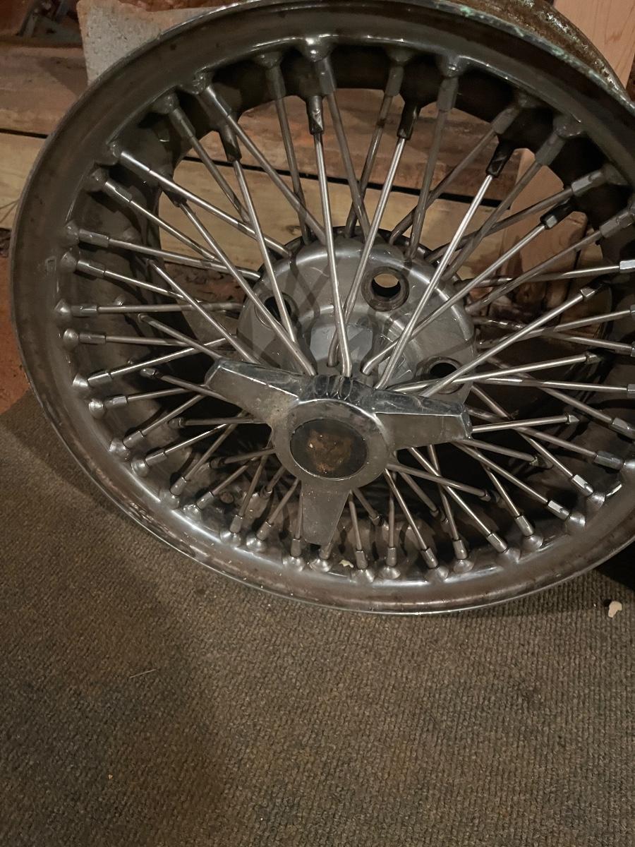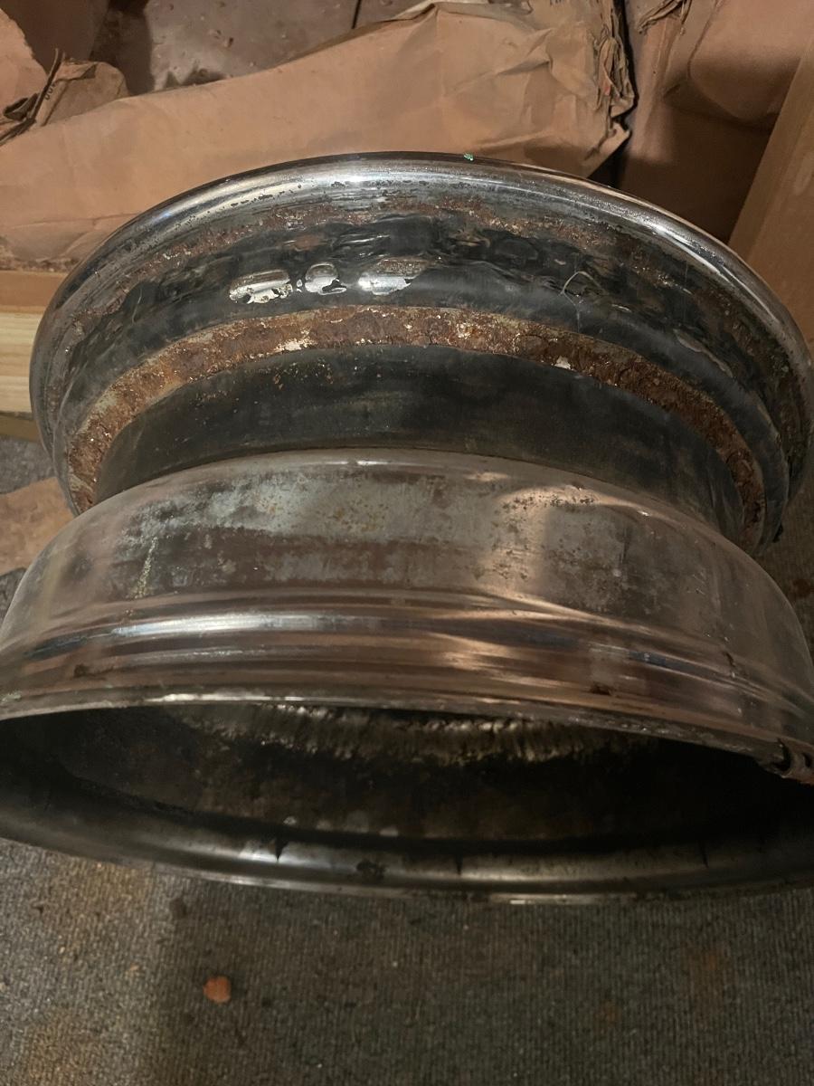 Lot includes four Dayton spoked five lug rims. One cap is missing, see pictures. Rims measure 16.5” H x 8” wide.