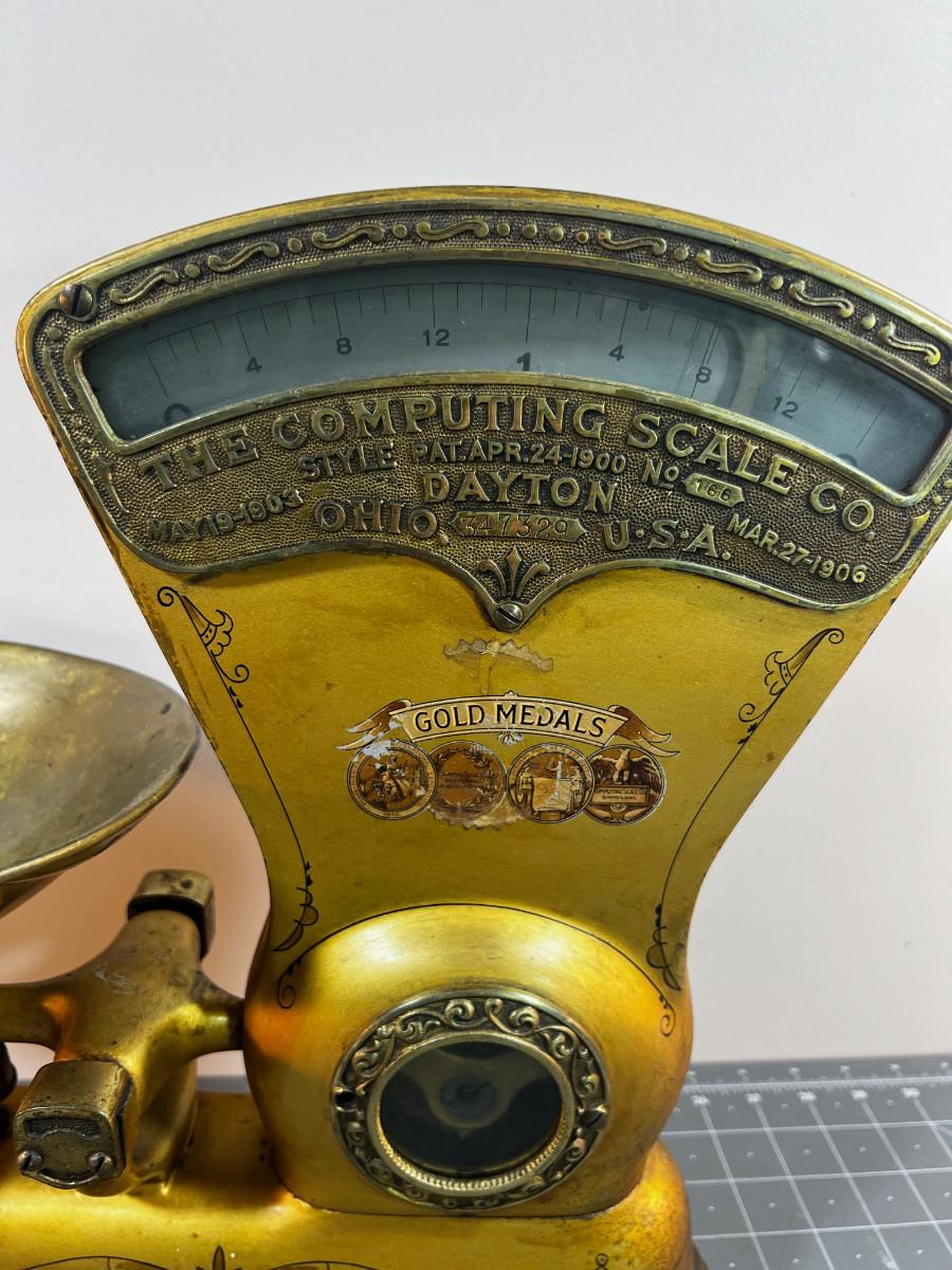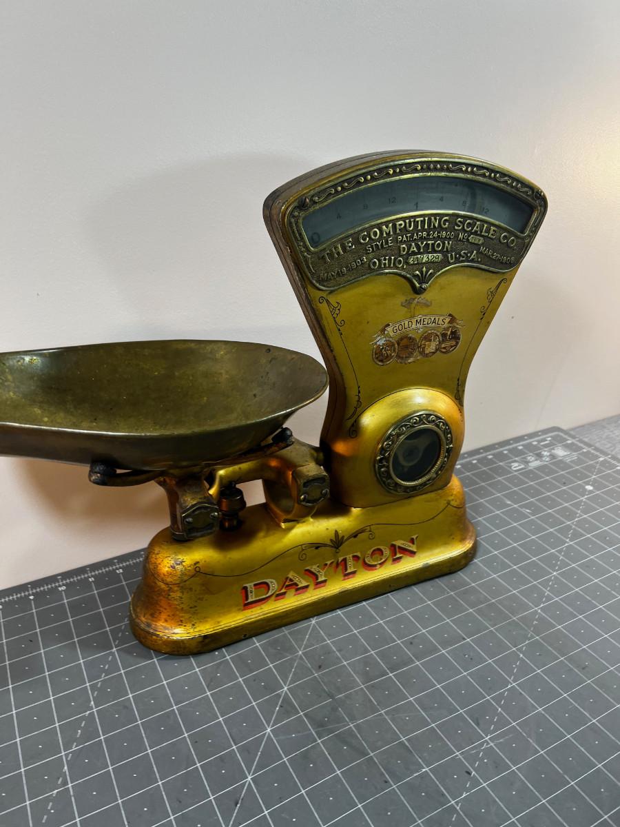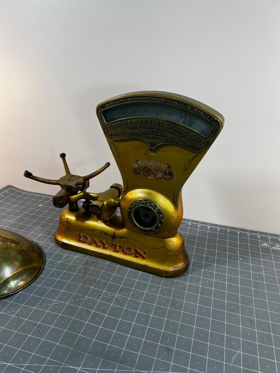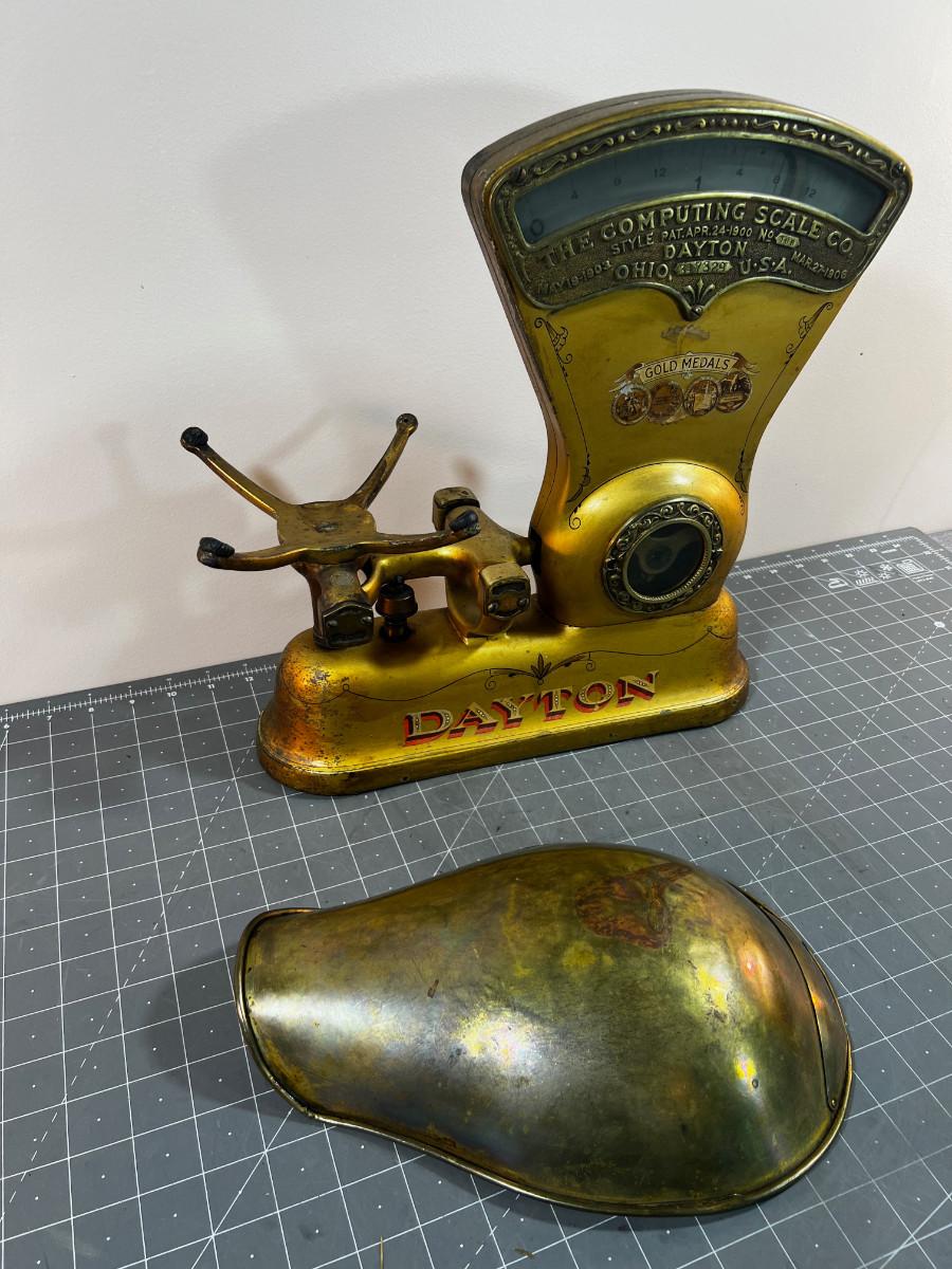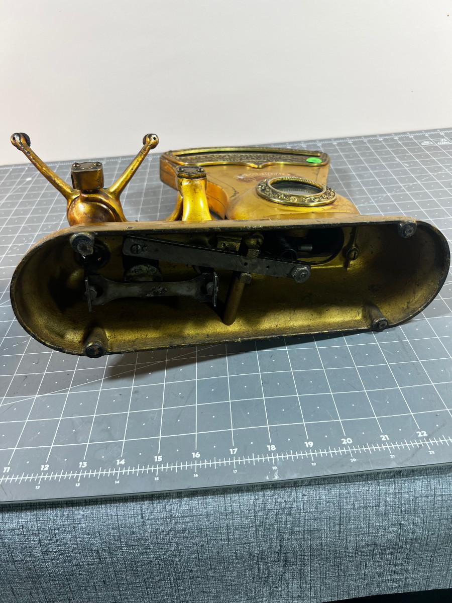 Made of Cast Iron with a brass tray. Measures: 15"Tall by 20" Wide.