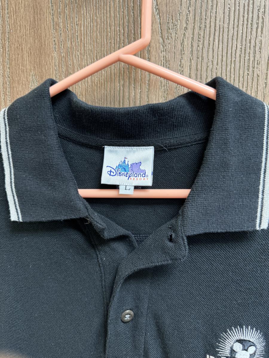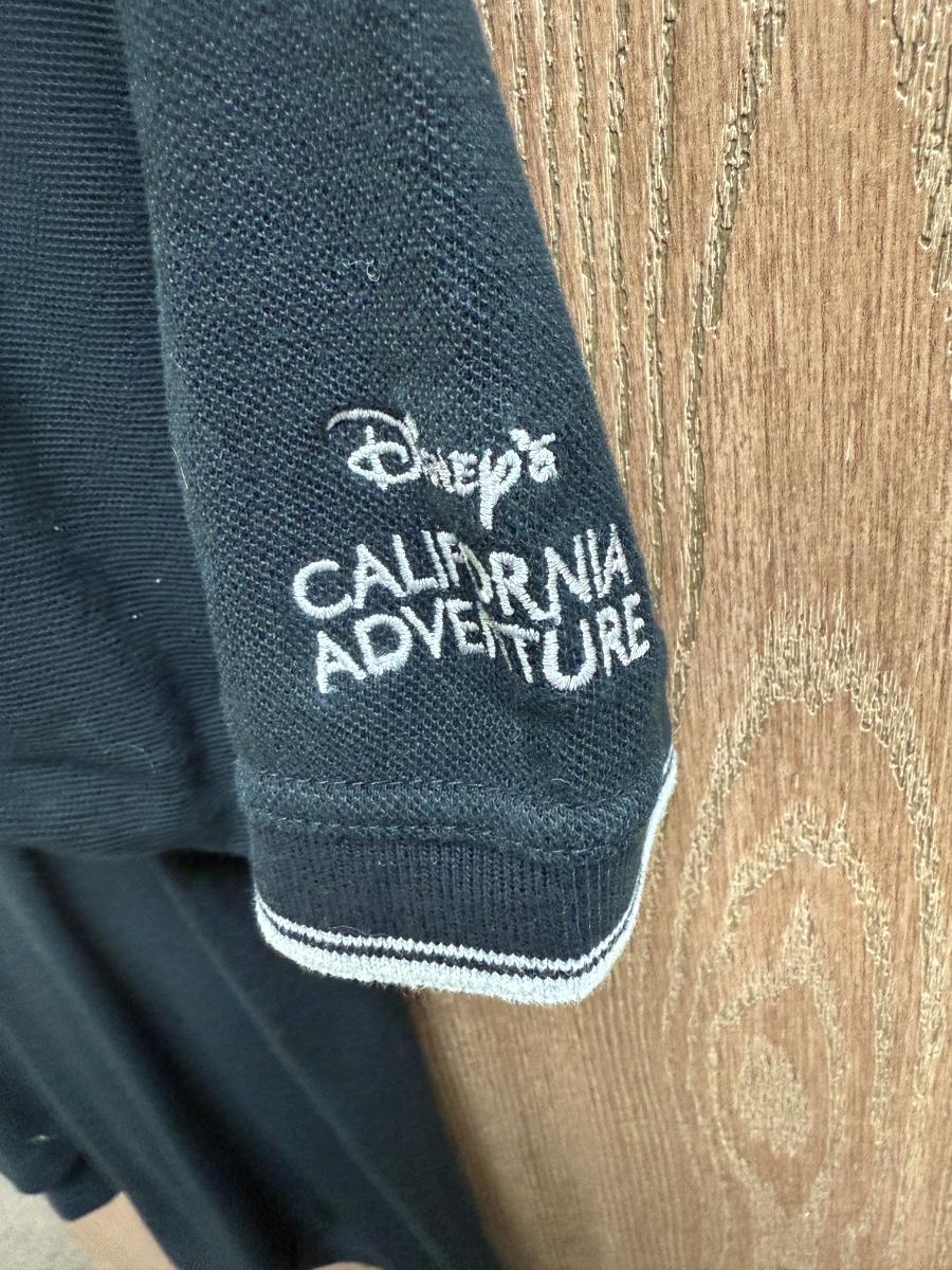 Blue with white trim. Size L, silver embroidery on the left chest. Disney resort wear, originally sold inside the theme park.