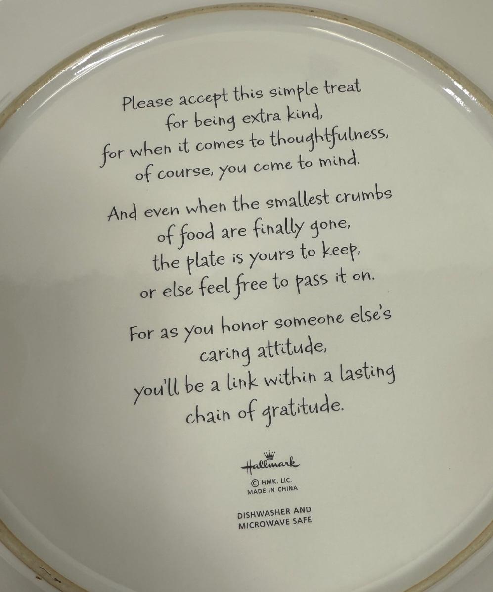 Hallmark Cherry Grateful Plateful Ceramic Platter Plate with description on back