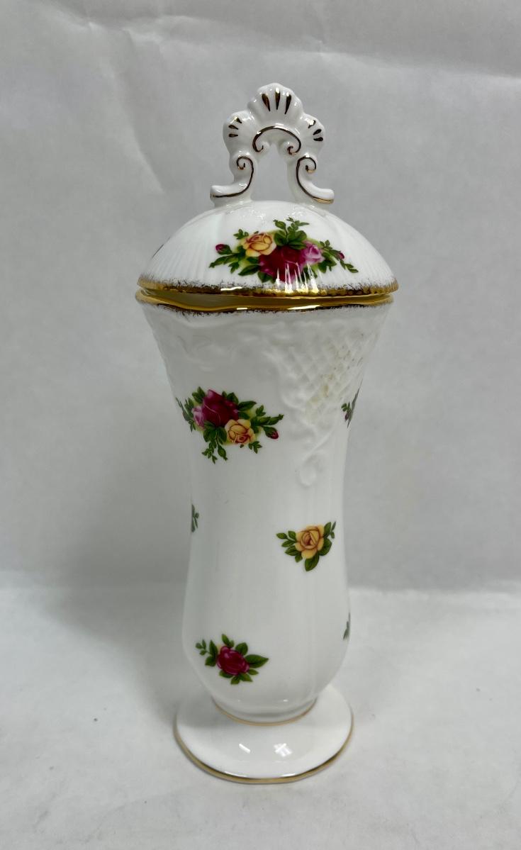 Vintage Royal Albert England Old Country Roses 5 1/2" Flower Bud Vase with Lid