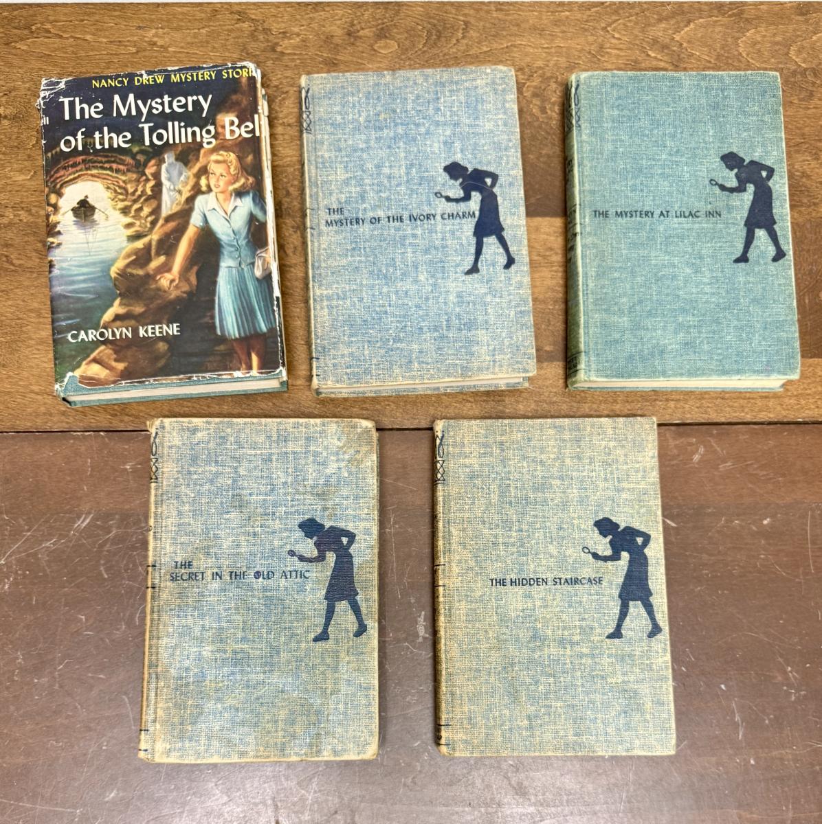 Lot of 5 books. Titles include “The Mystery of the Tolling Bell”, “The Mystery of the Ivory Charm”, and “The Secret in the Old Attic”.