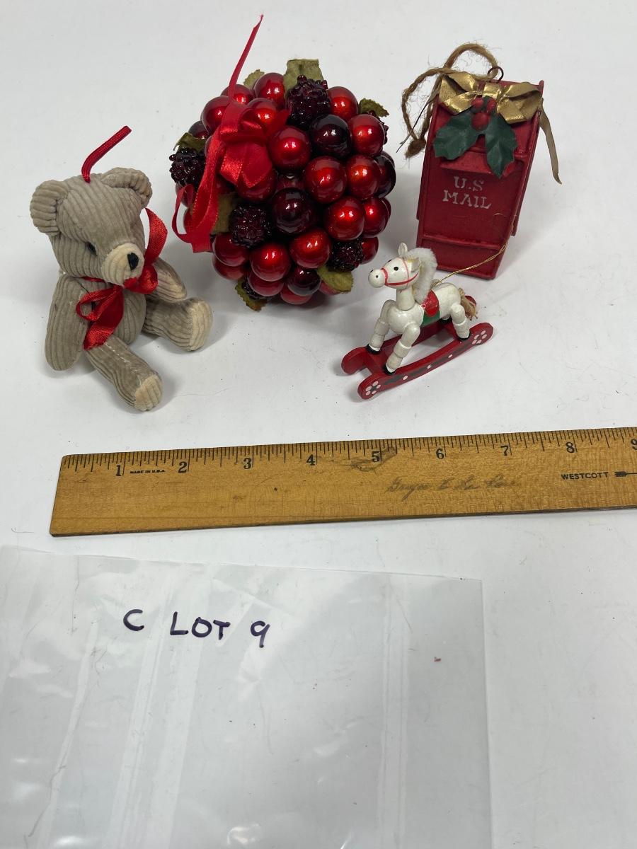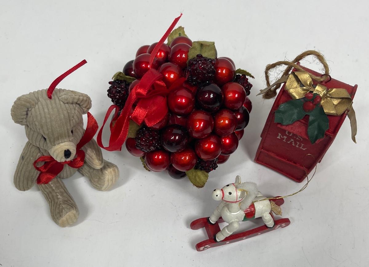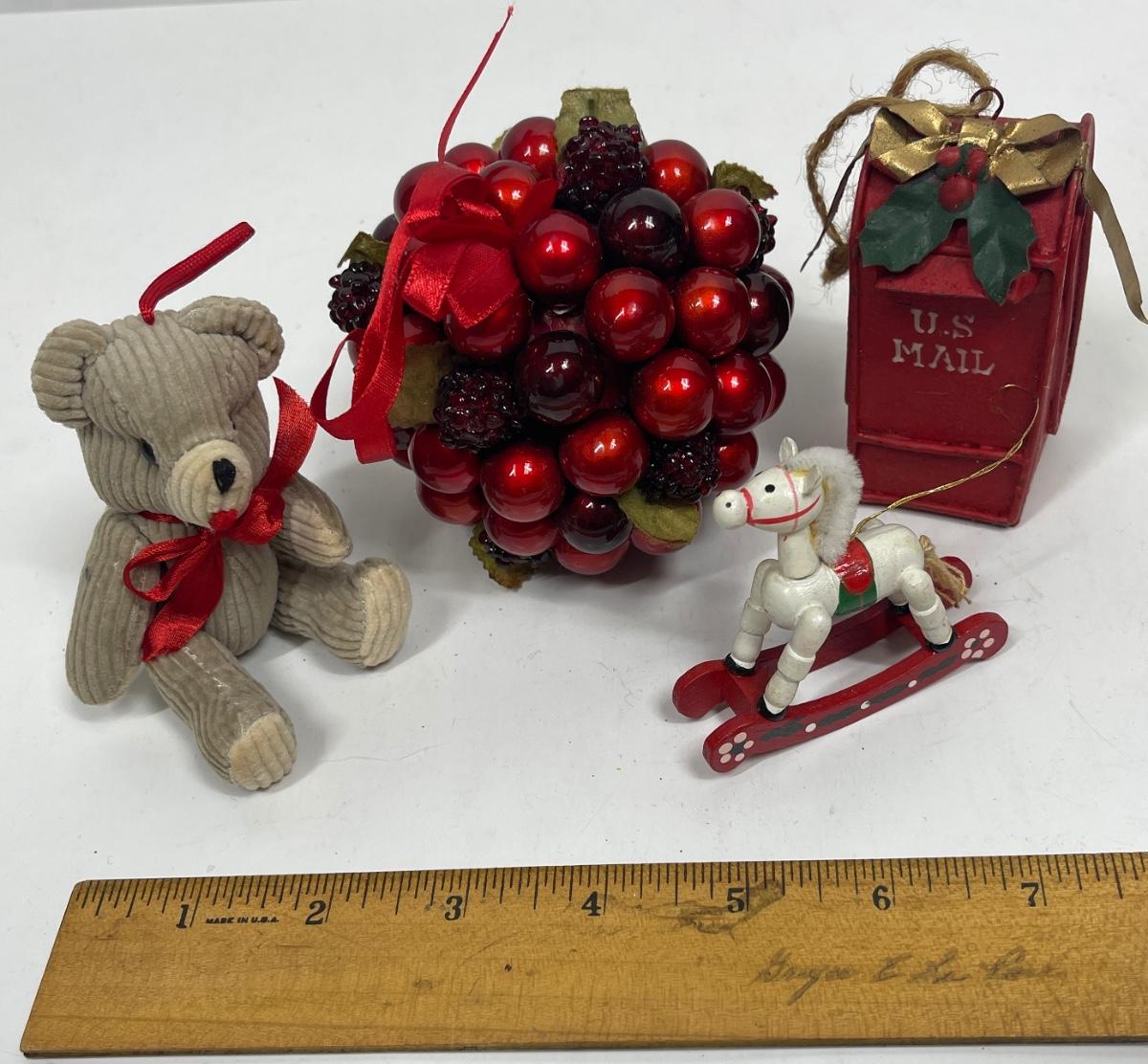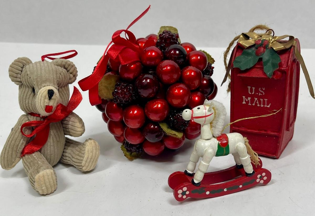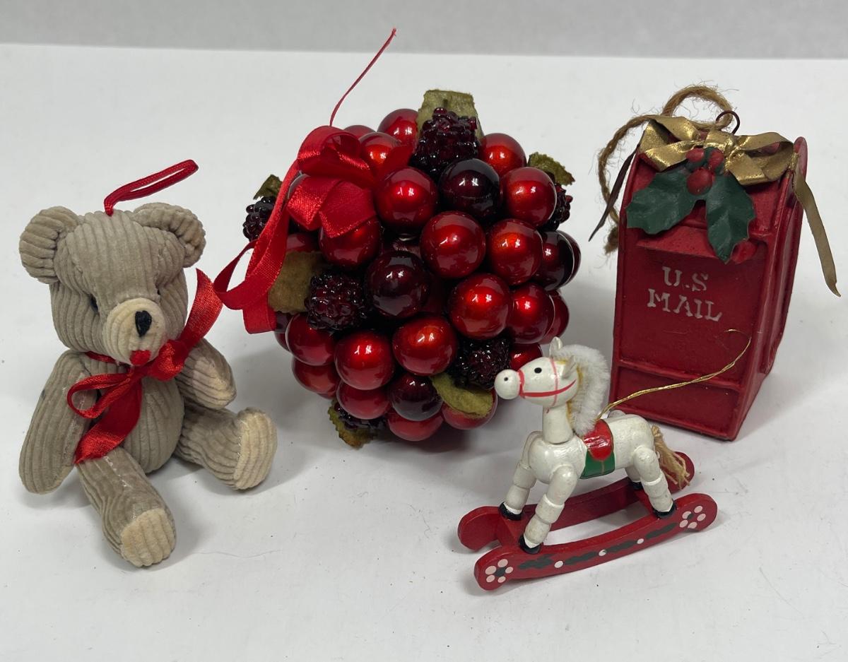 Christmas Tree Ornament Lot - Teddy Bear, Rocking Horse , Mail Box, etc