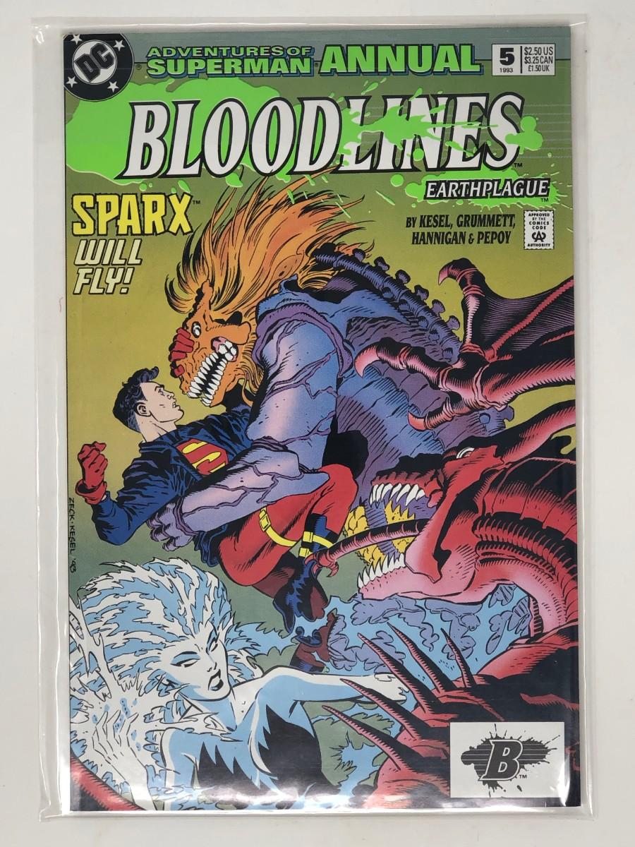 DC, BLOODLINES Superman ACTION Comics ANNUAL 5 earthplague sparx will fly