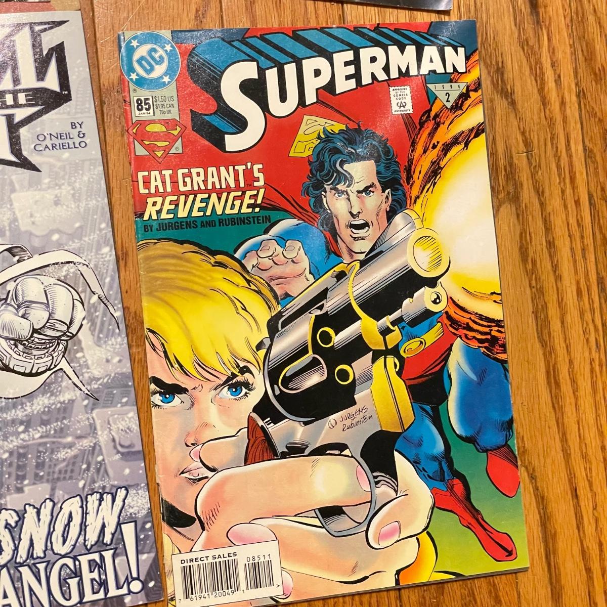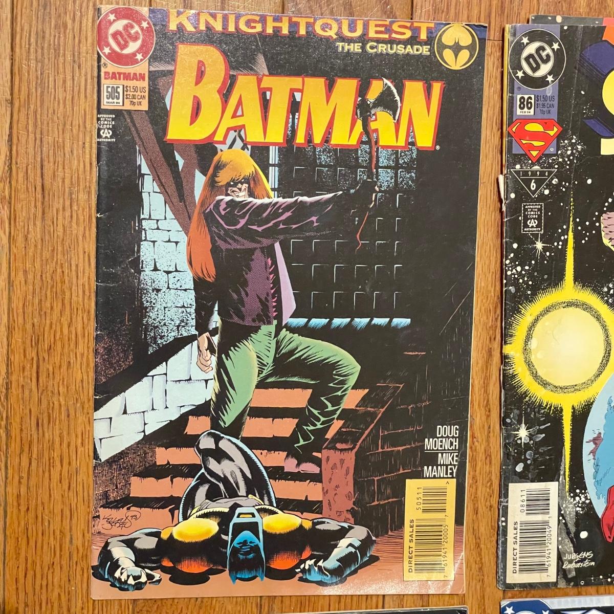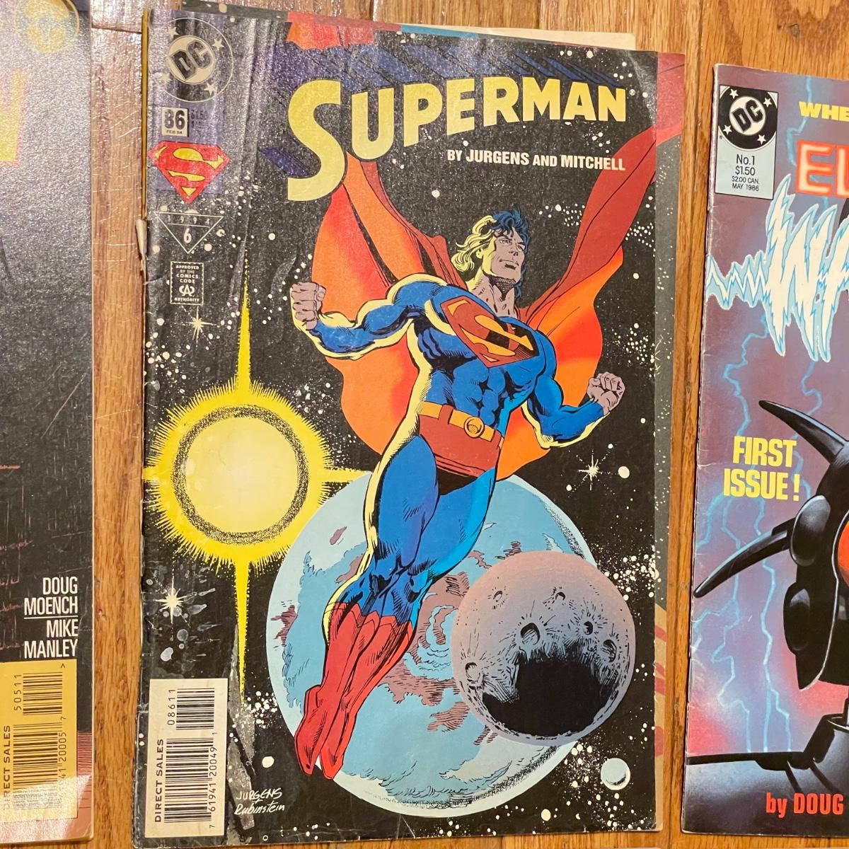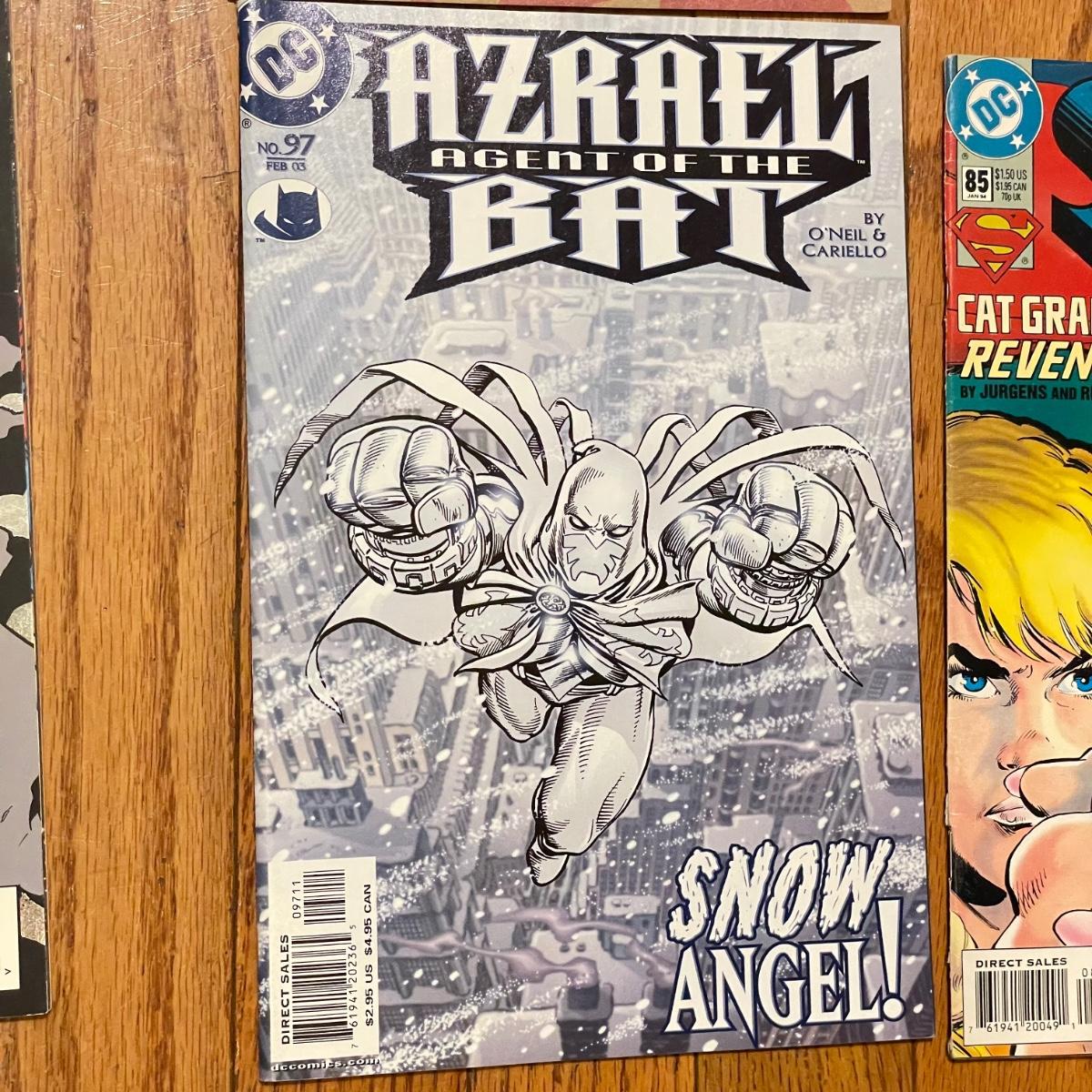 Six DC Comics including two Superman, the “1st issue of a brand new era!” Legion of Super-Heroes #54, Electric Warrior, Batman and Azrael Agent of the Bat. Superman #86 has its cover removed and a slight tear in it. See images. Shipping available.