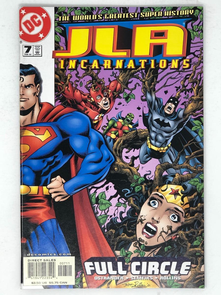 DC, JLA Incarnations, #7. Approximate measurements: 7 x 9 inches. Materials: paper. Shipping cost: $4. Different rate to California, Alaska, Hawaii and all International apply.