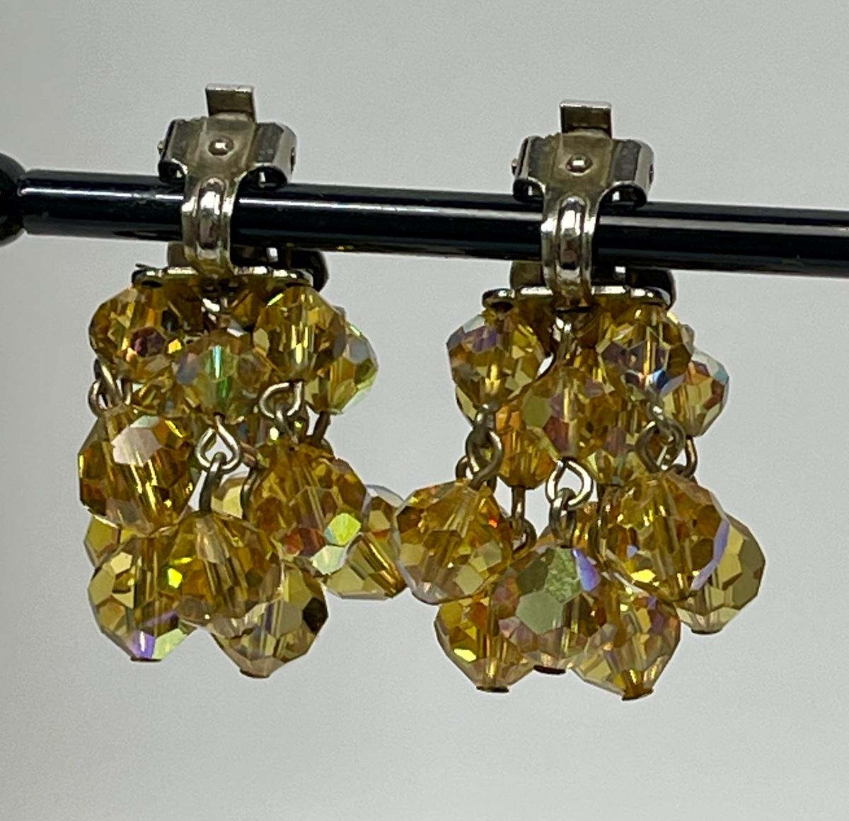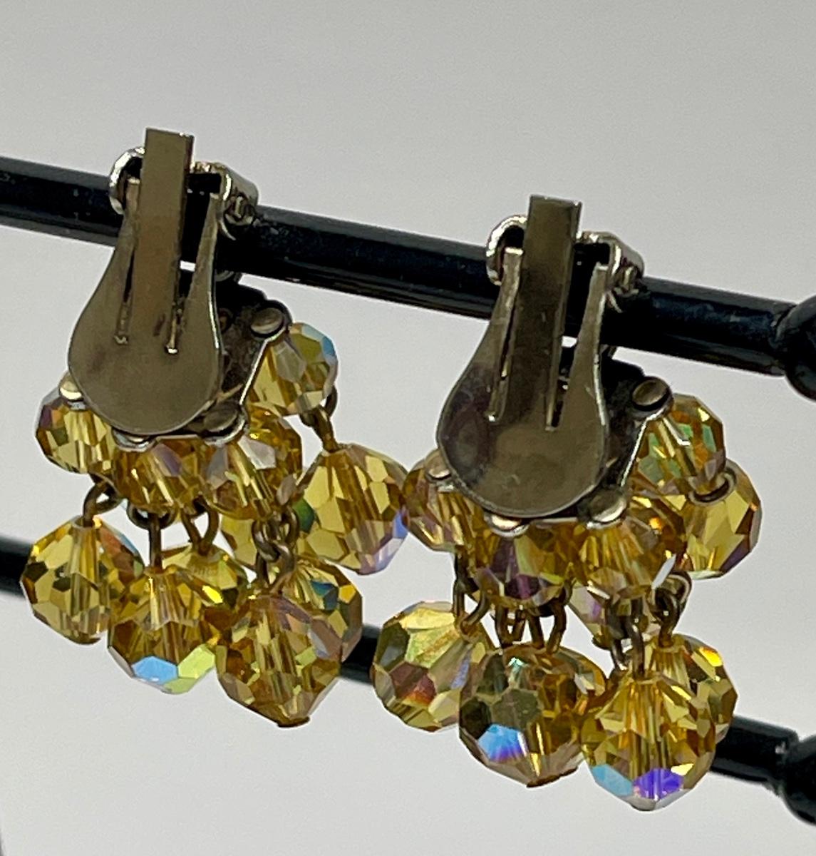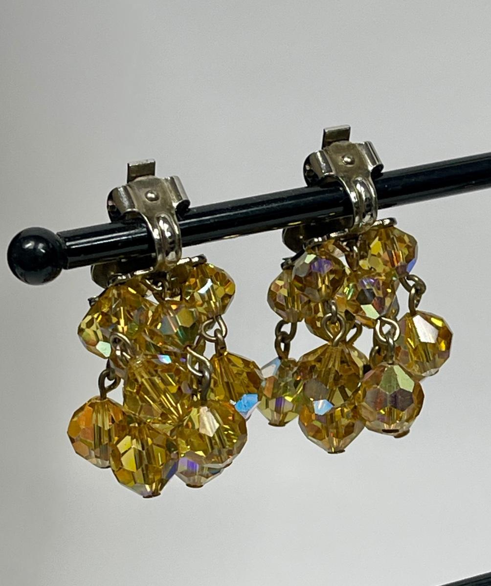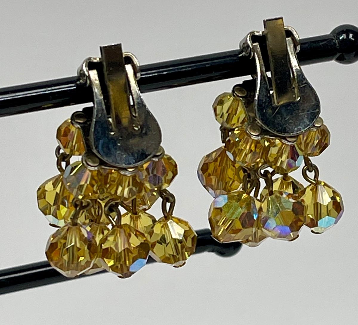 Vintage Amber Colored Rhinestone clip-on Earrings