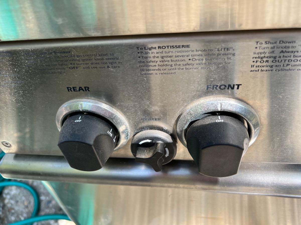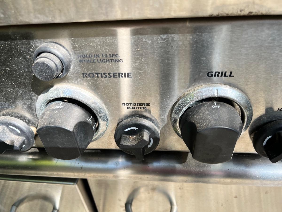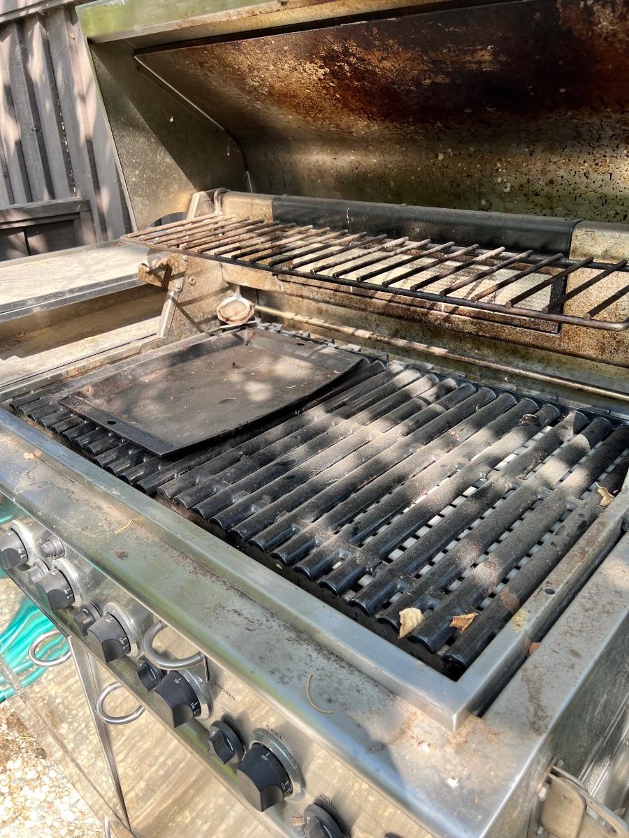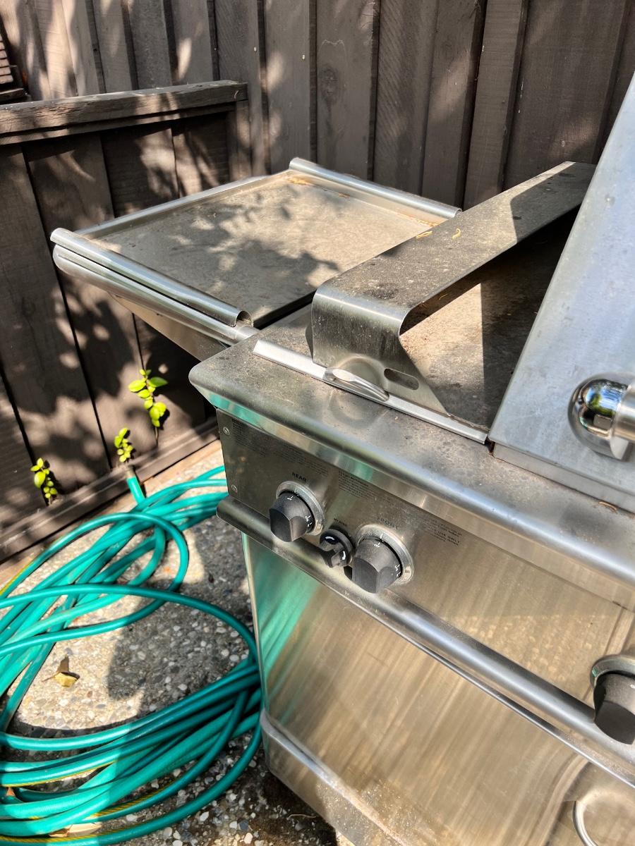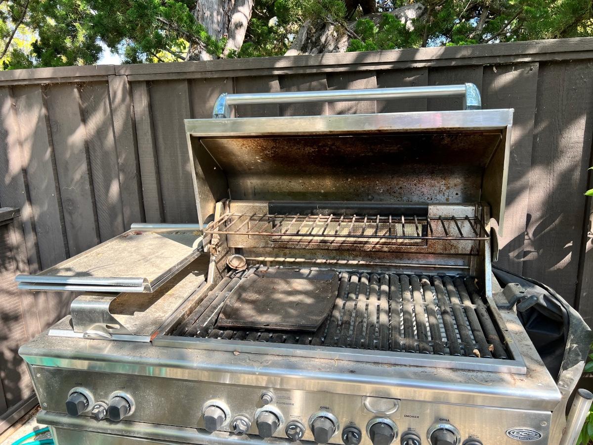 48 x27x 54 with two extension tables that fold out, cover, utensils, pans retails over 15k