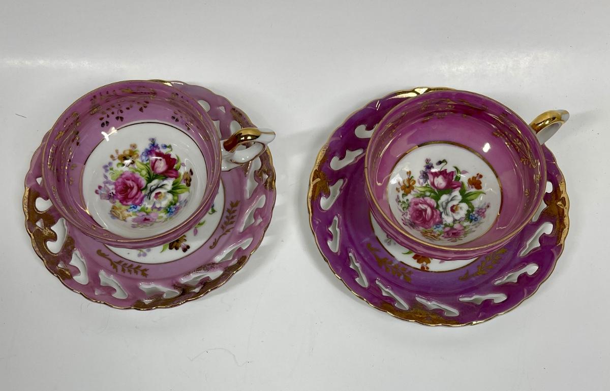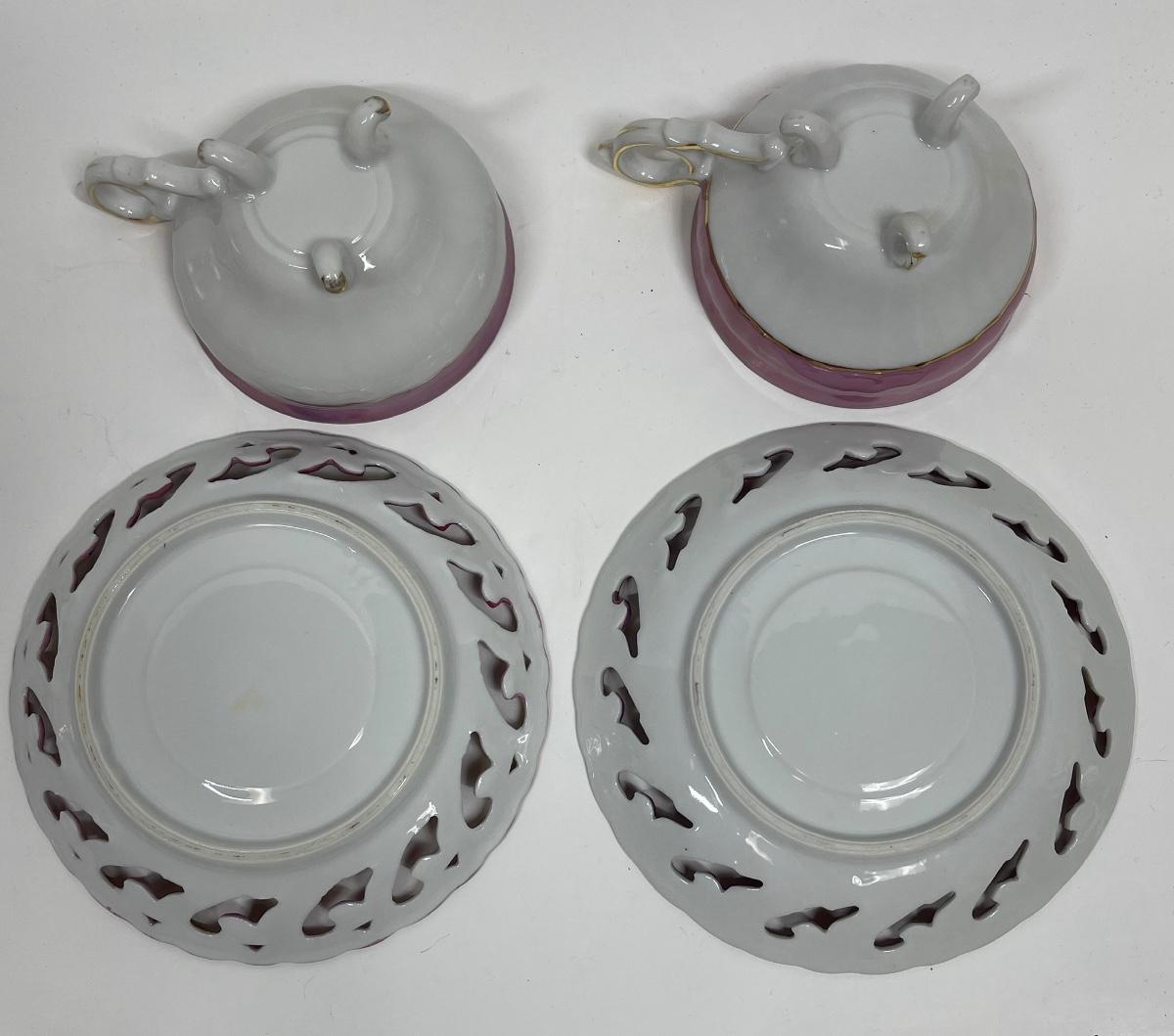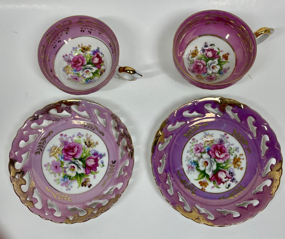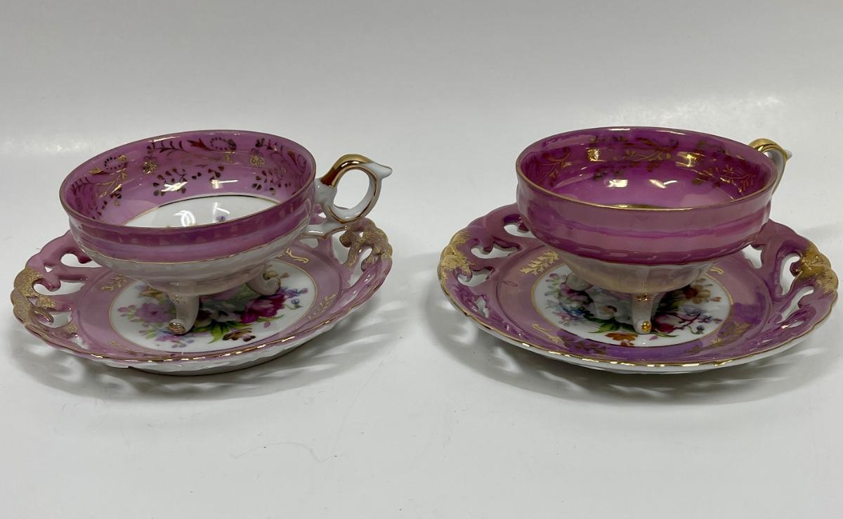 Both teacups are footed, all items are in very good condition. Made in Japan.