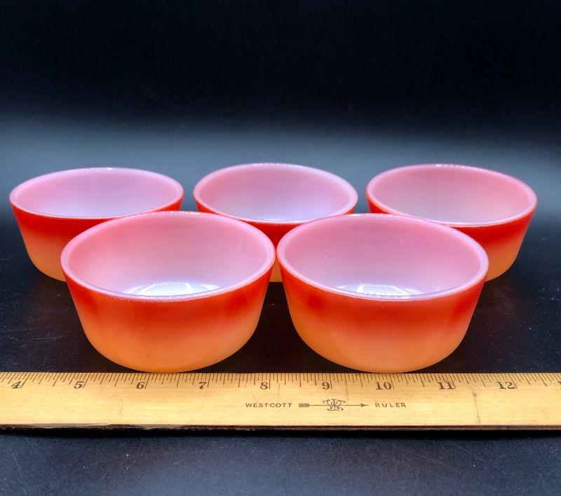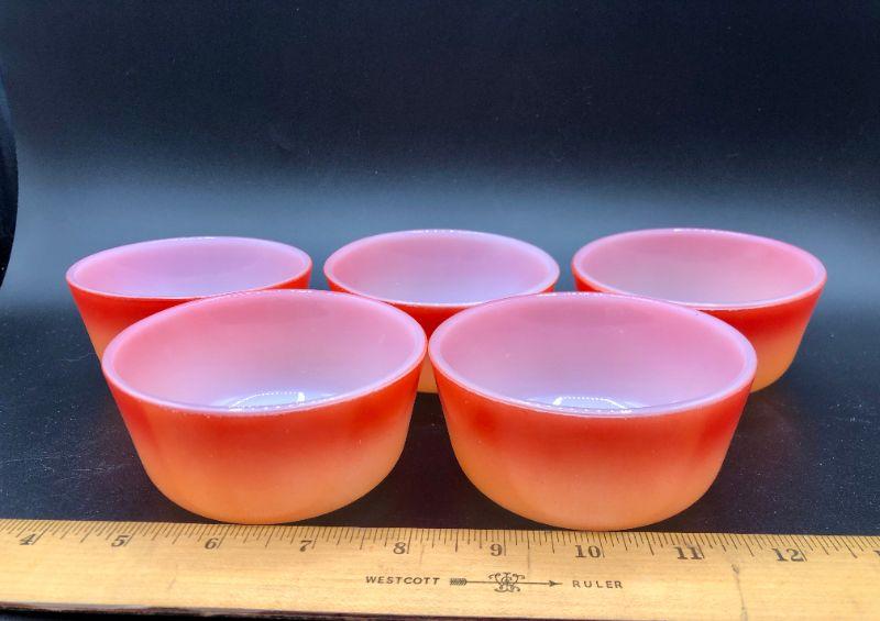Set of 5 vintage ramakin fruit bowls. Great orange ombre color. Good vintage condition.
