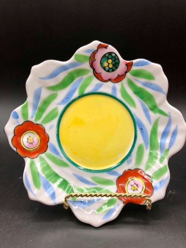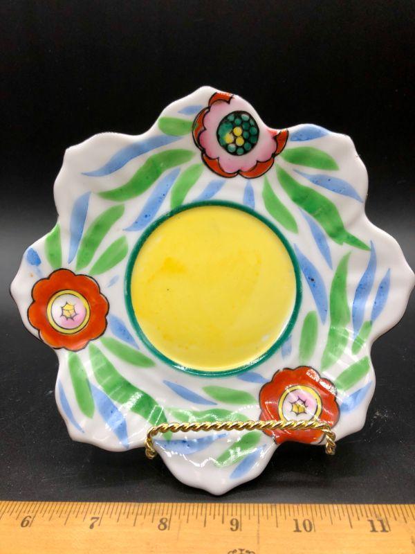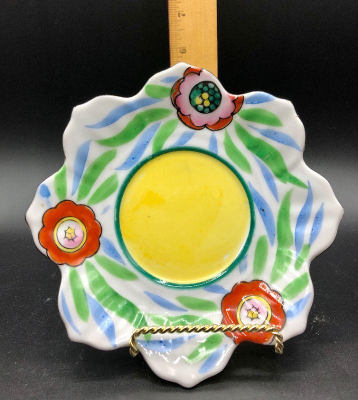 Flower shaped plate. Handpainted floral design. Made in Japan. Good Condition.