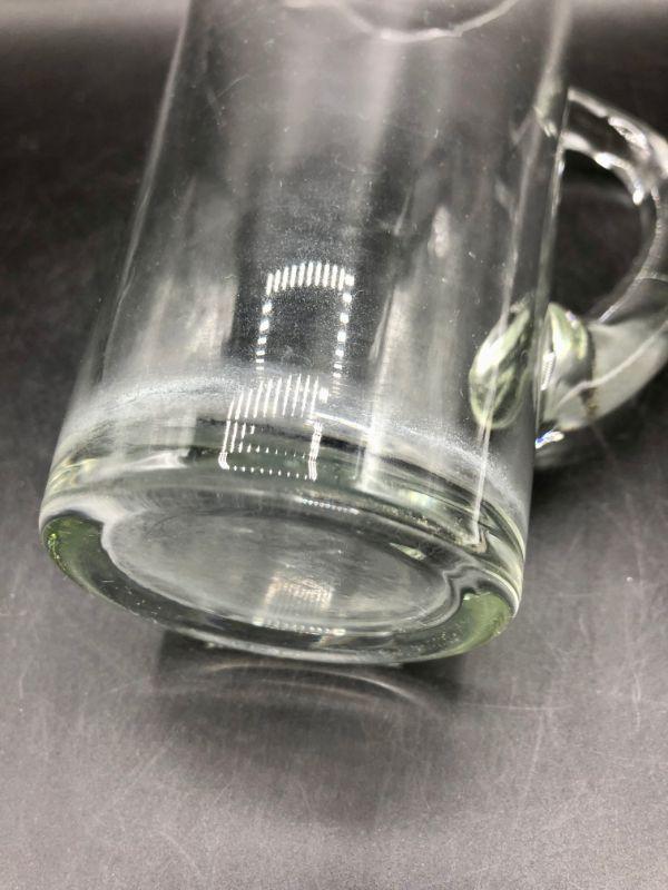 Clear glass, 8.5" tall, in excellent condition.