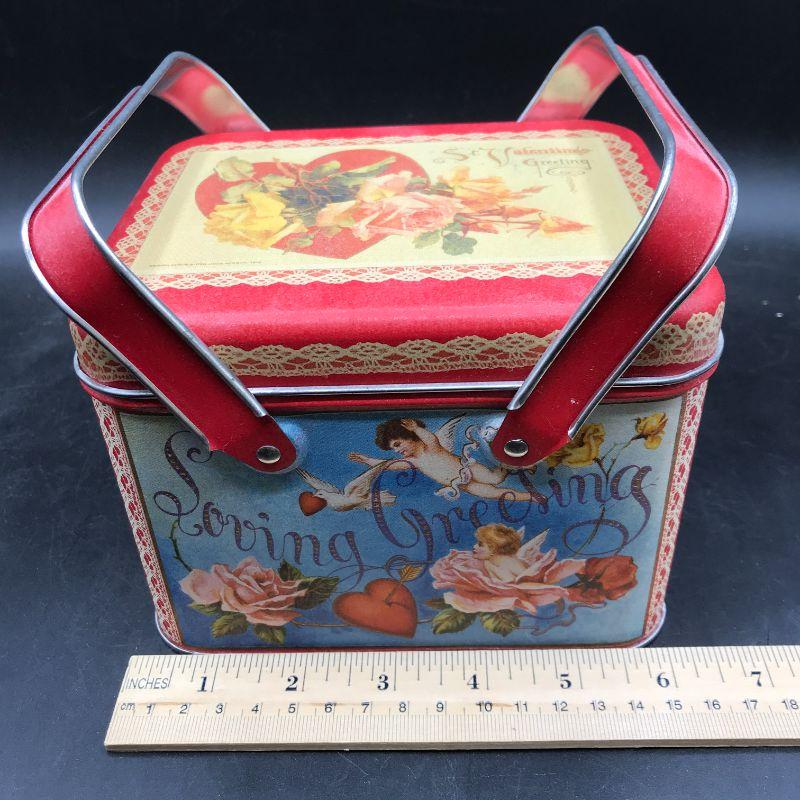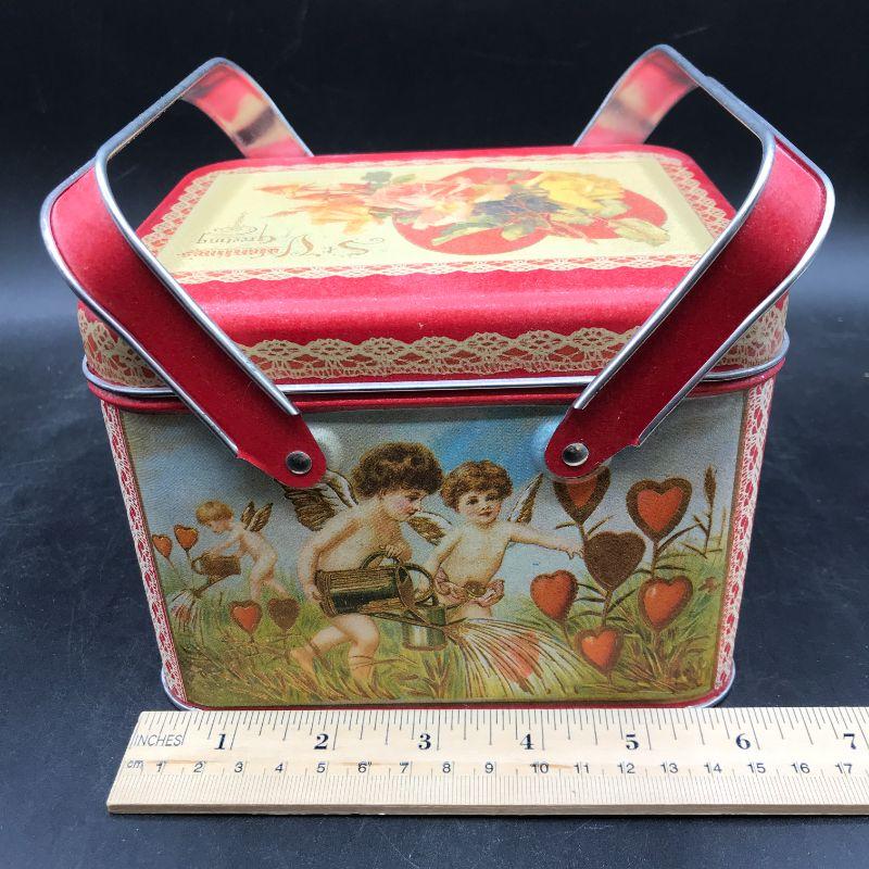 Cupid with red hearts and arrows St Valentine's Greeting tin with double handle YDES# 355