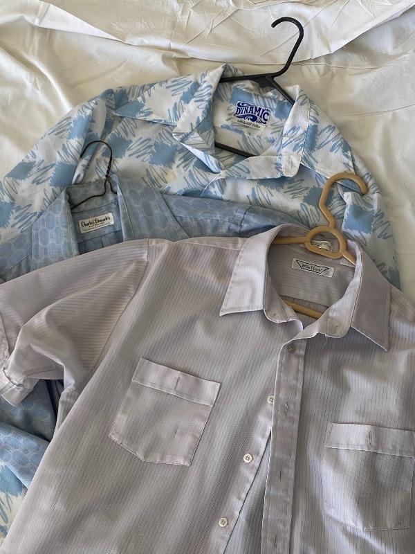 Set of 3 vintage men's button front shirts. Great vintage patterns from Idle Time, Charles Edward's, and Dynamic. Only the Idle Time shirt had the size, XL, the others are same maybe a large.