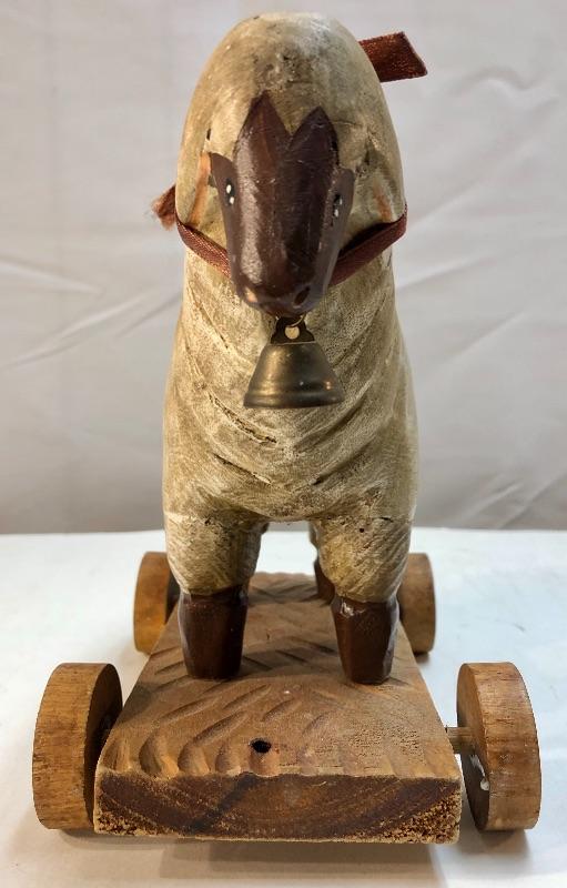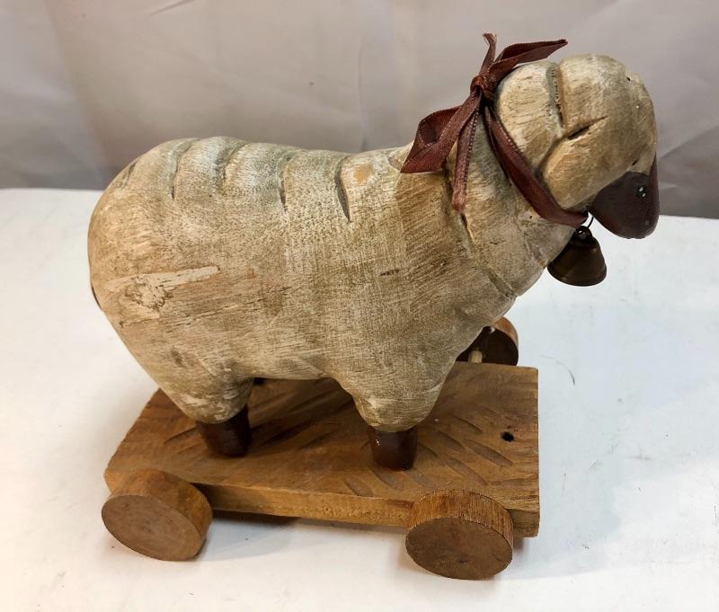 Carved wood sheep push / pull toy. Great for display. About 7” size. No maker markers. Age unknown.