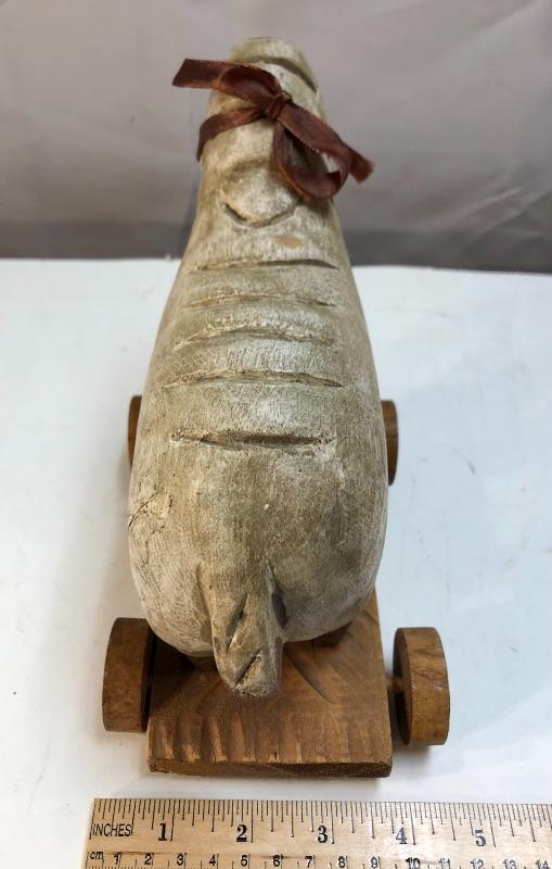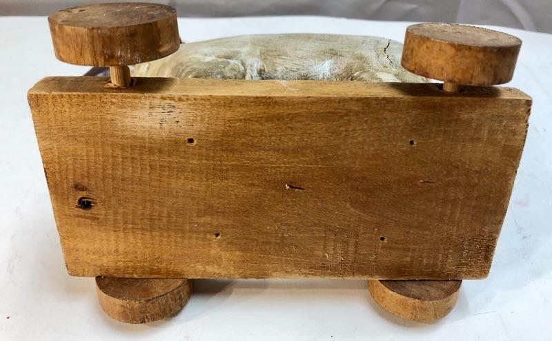 7” Carved Wood Primitive Rustic Sheep Push Pull Toy