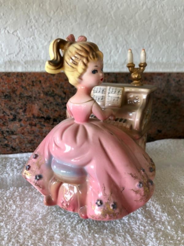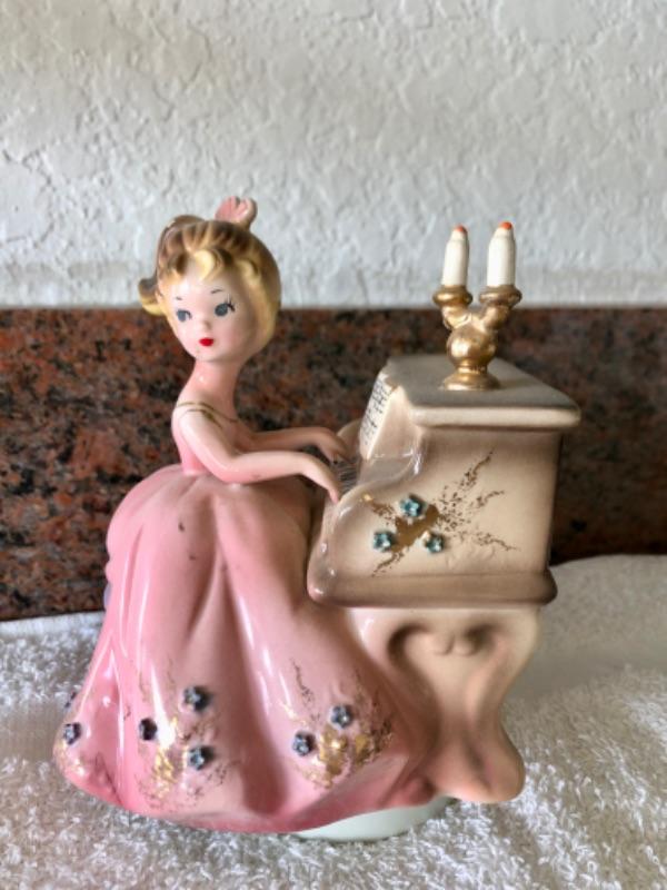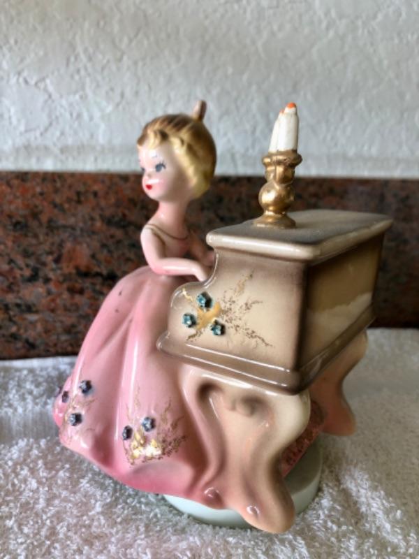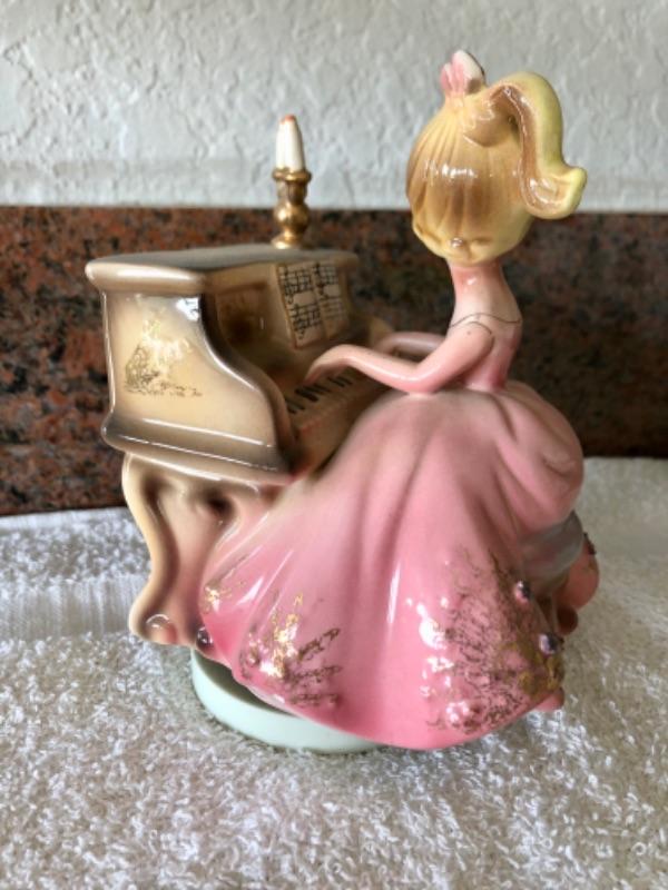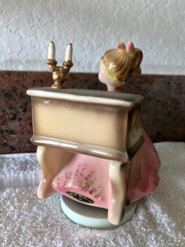 Vintage Josef Originals music box. Figurine of girl playing a piano. Good condition.