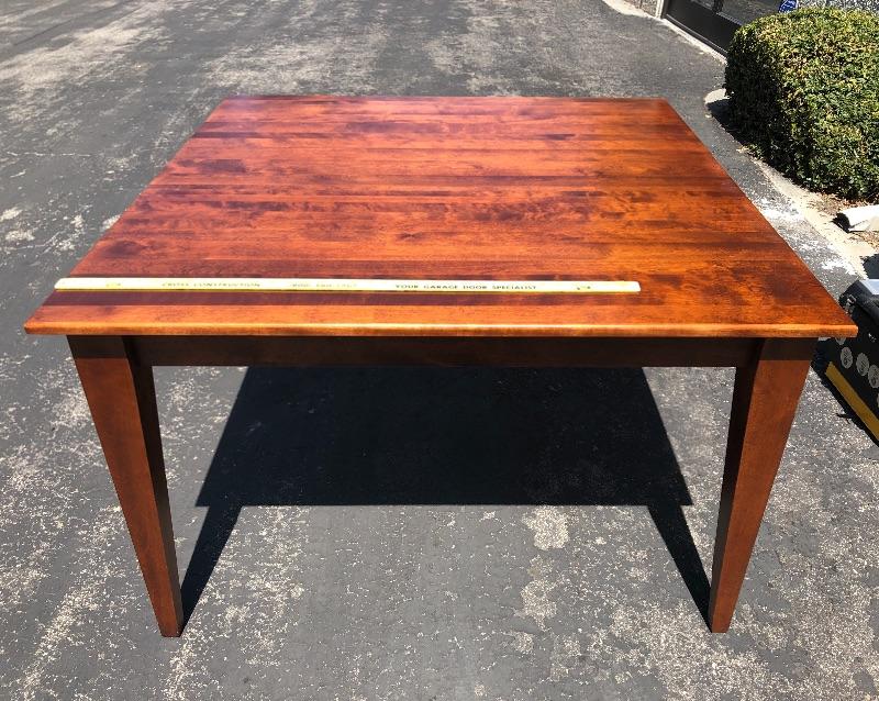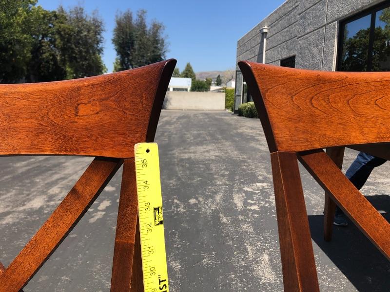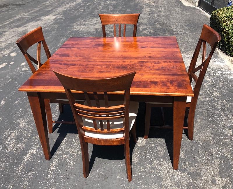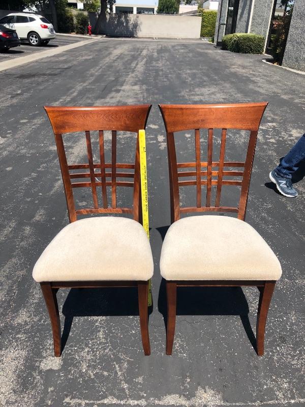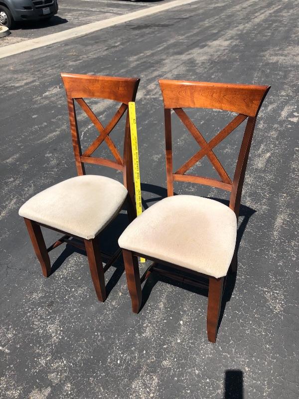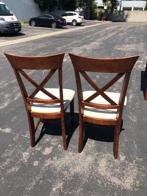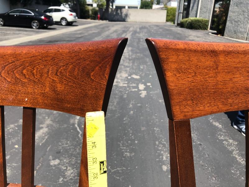 The four chairs are vey similar, but the backs are two different patterns. Unsure if it was manufactured that way, but they go well with the table. Table is 48" across.