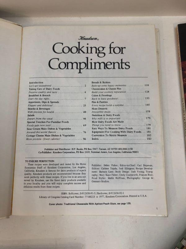 Knudsen Cooking for Compliments cookbook. Hardback book in good condition. #022-0474