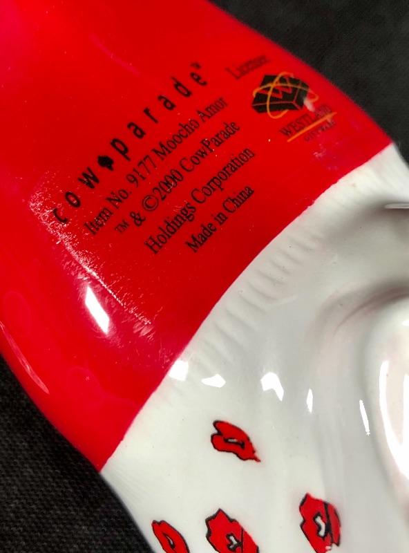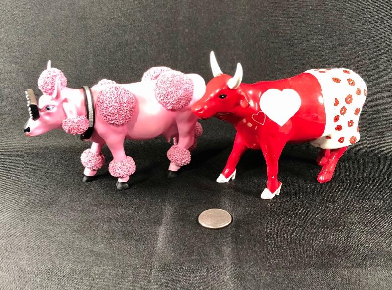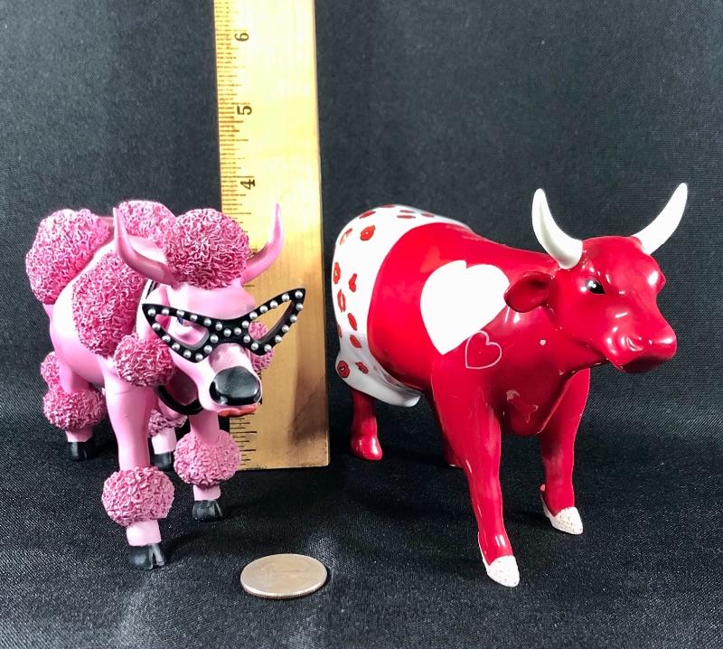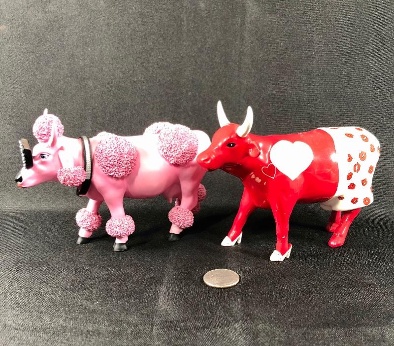 Pair of collector Cow Parade figurines. Moocho Amor (red) and French Moodle (pink). Display great.