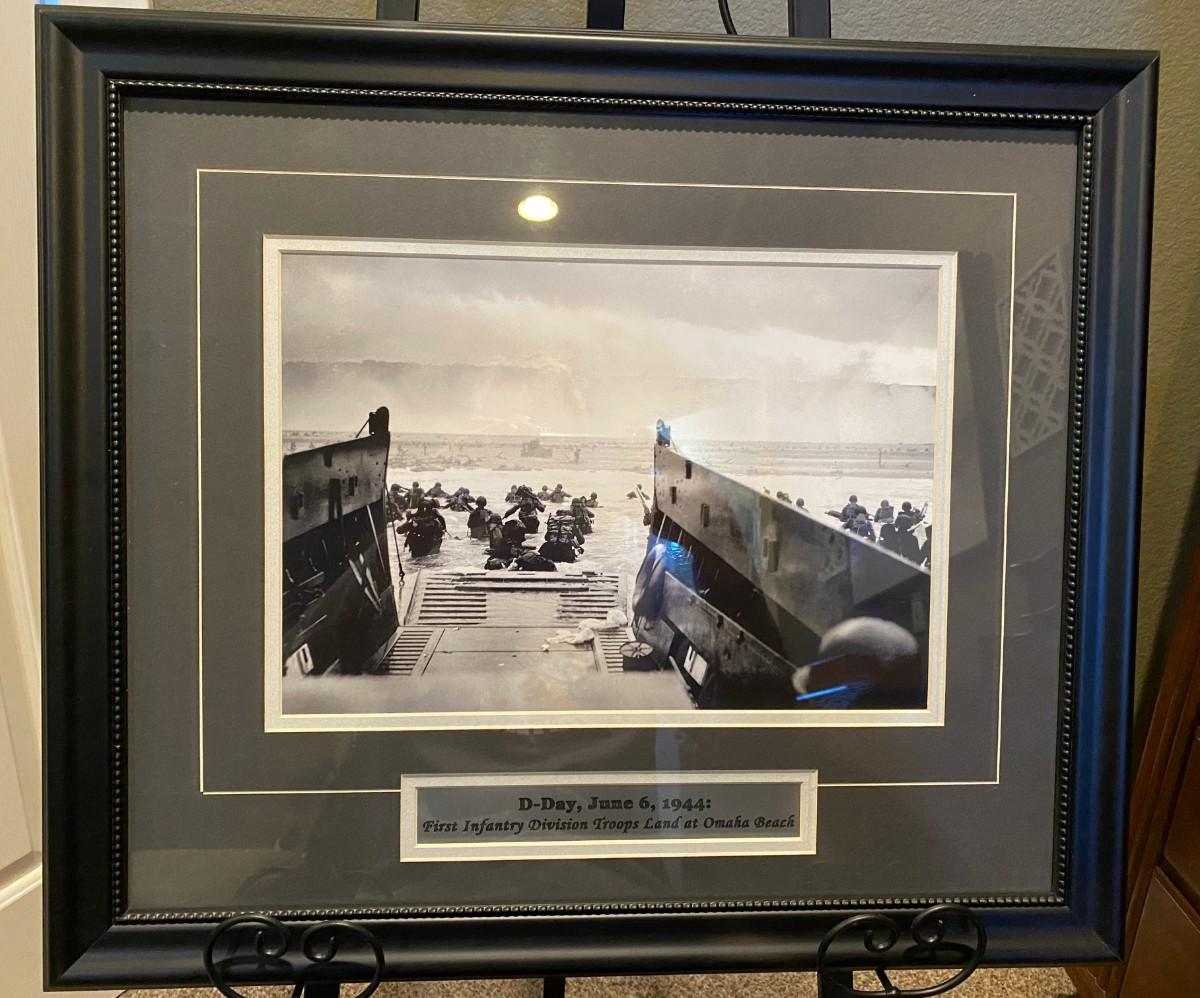 Framed WWII D-Day 1st Division Landing at Omaha Beach
