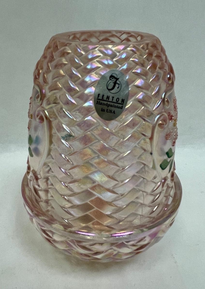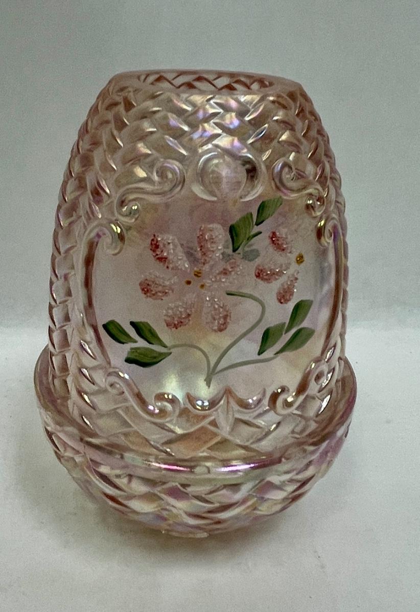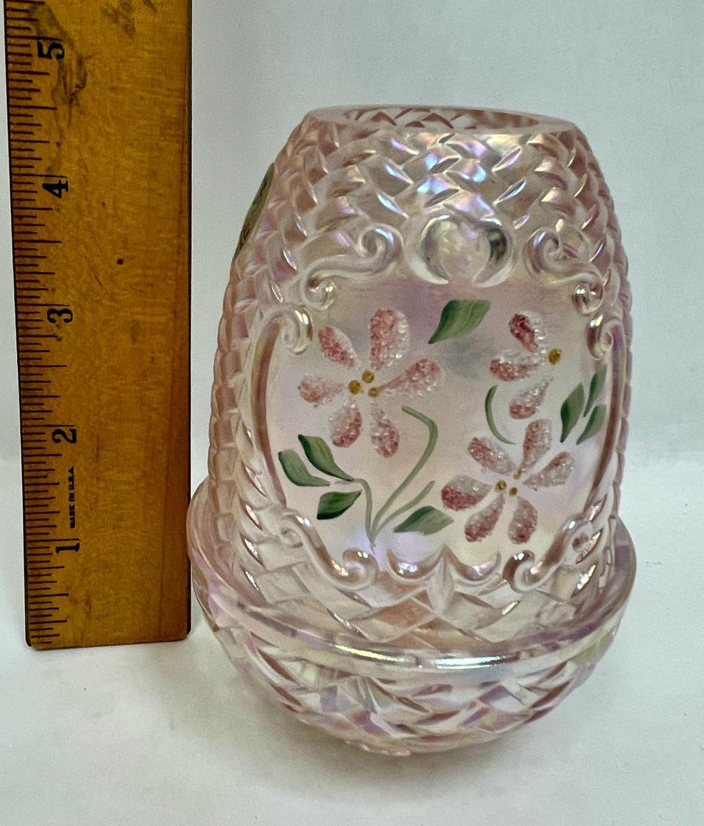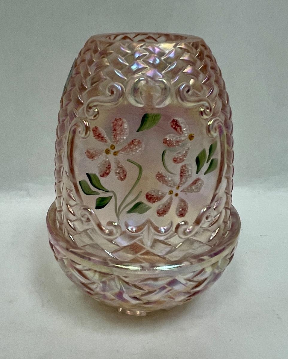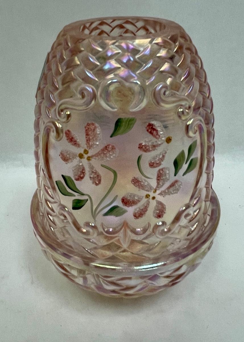 Fenton Fairy Lamp Pink with Pink Flowers