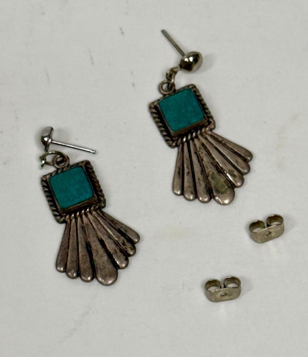 Vintage Earrings silver tone with turquoise stones pierced ears