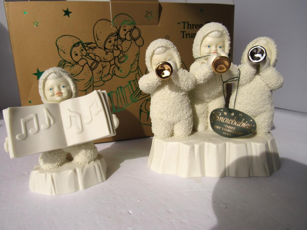 Older Dept 56 Snowbabies 2 Pc Set: "Three Tiny Trumpeteers"