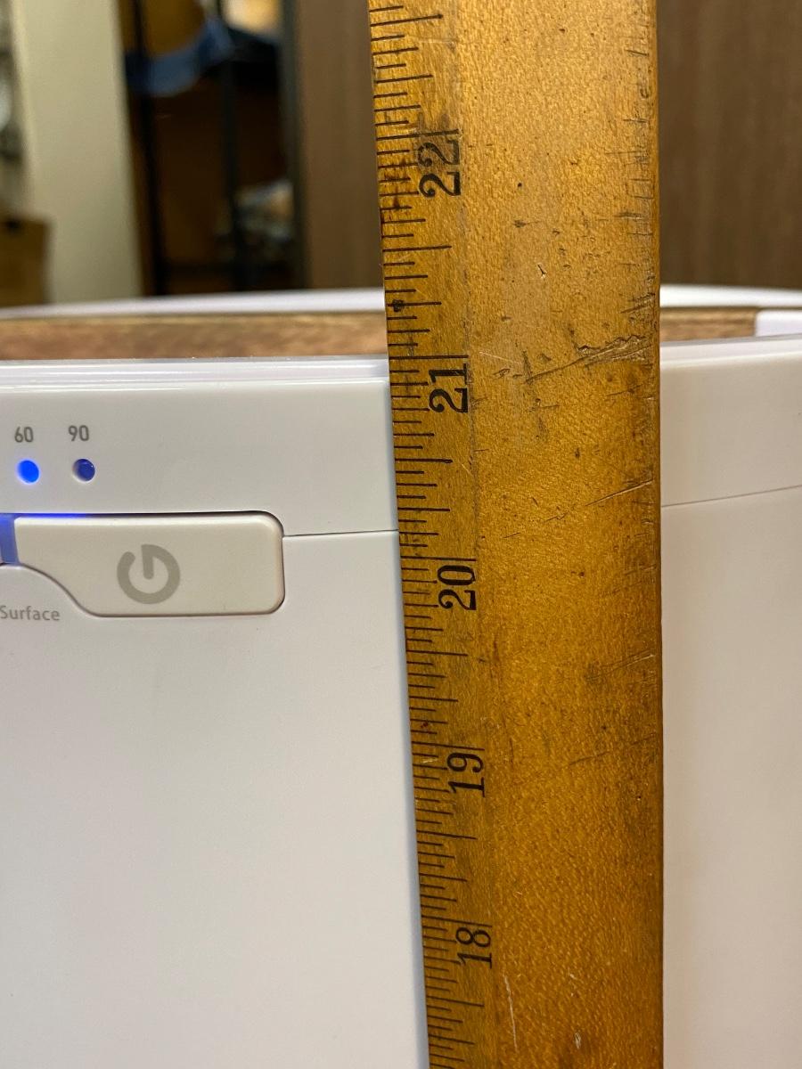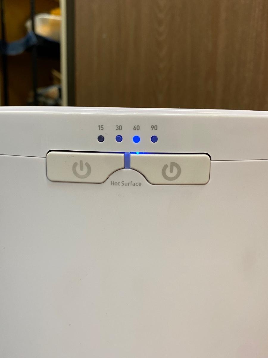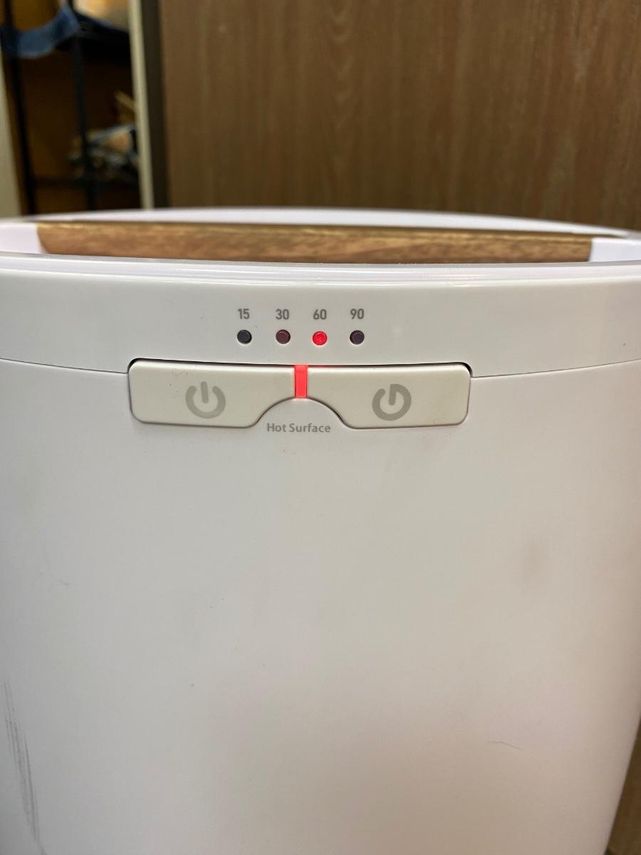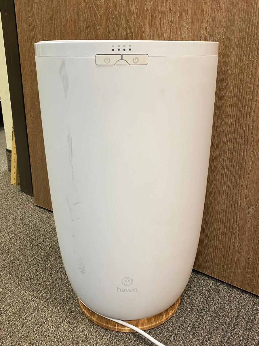 Haven Electric Towel Warmer Bin Pod in White & Wood Finish. Works. Great for bath towels and small lap blankets. Not sure what the interval numbers stand for, I think it is minutes it stays warm for. No manual included but you can find various instruction links online. It does have some scuffs on the outside, may come clean with a little work.