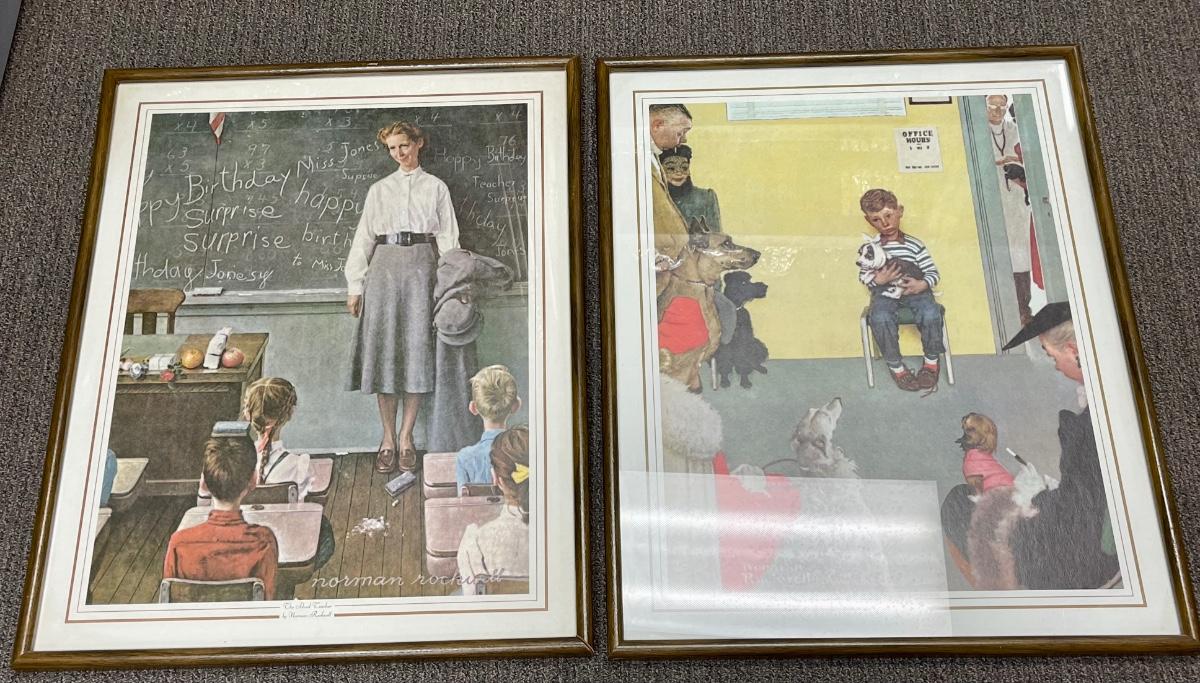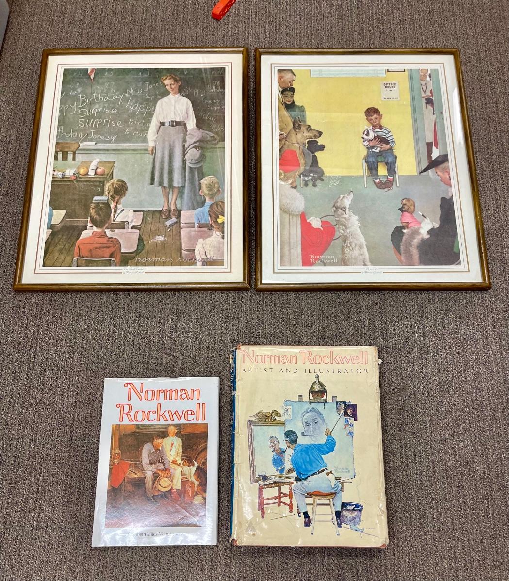 Norman Rockwell Framed Poster Art & Coffee Table Books. In good previously owned conditions.