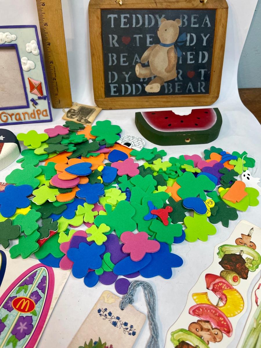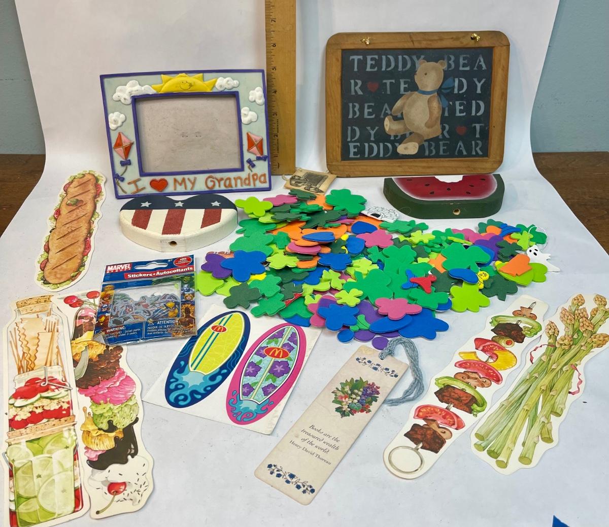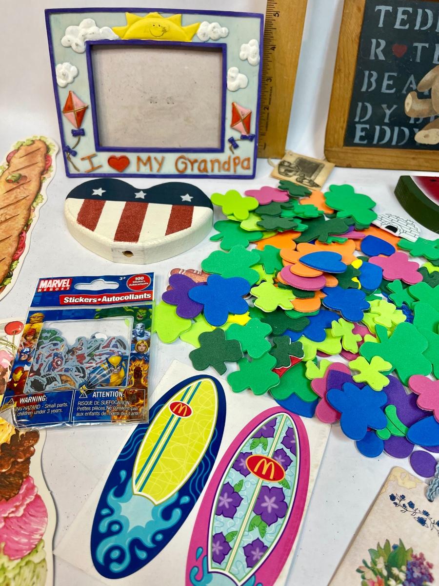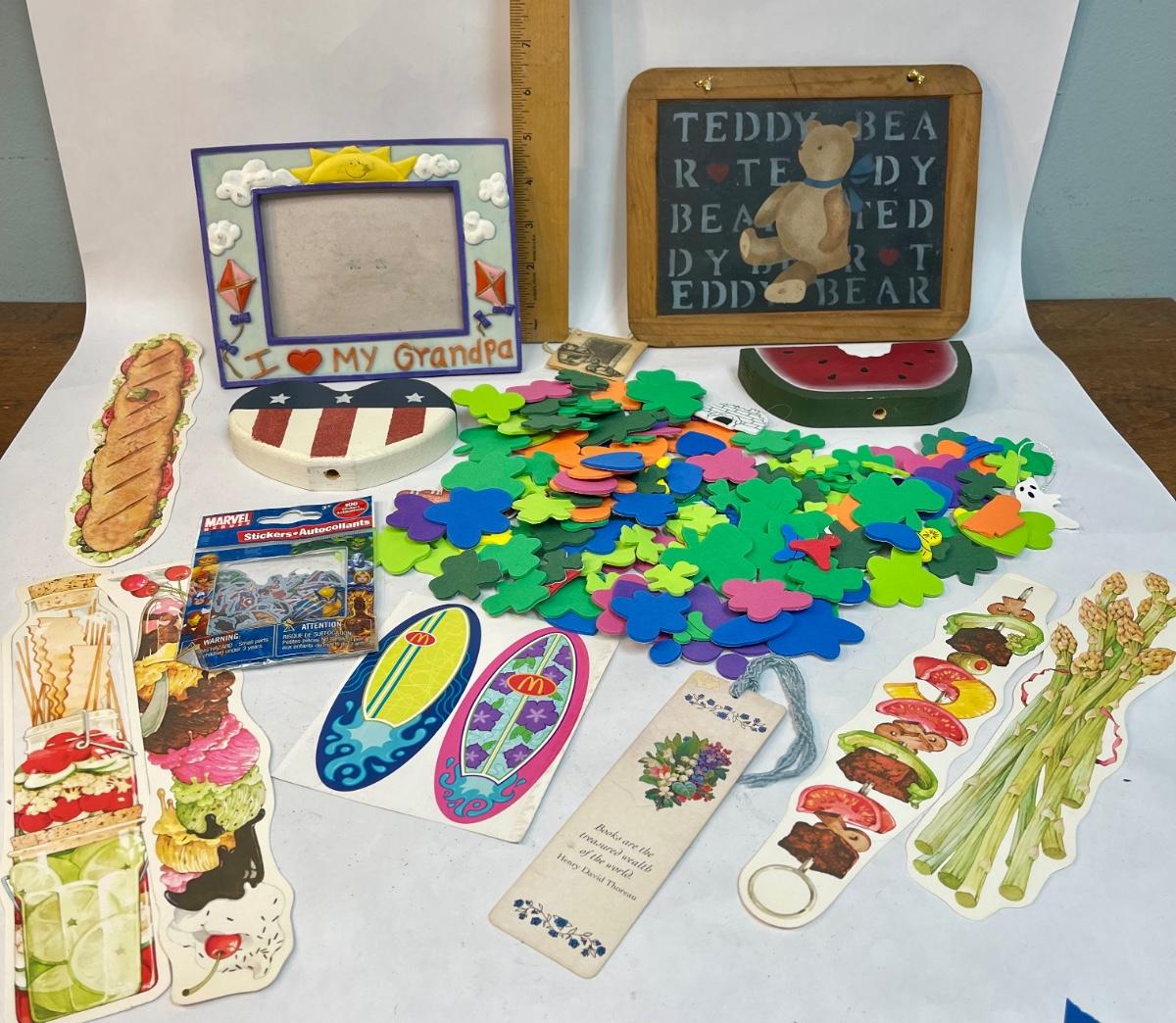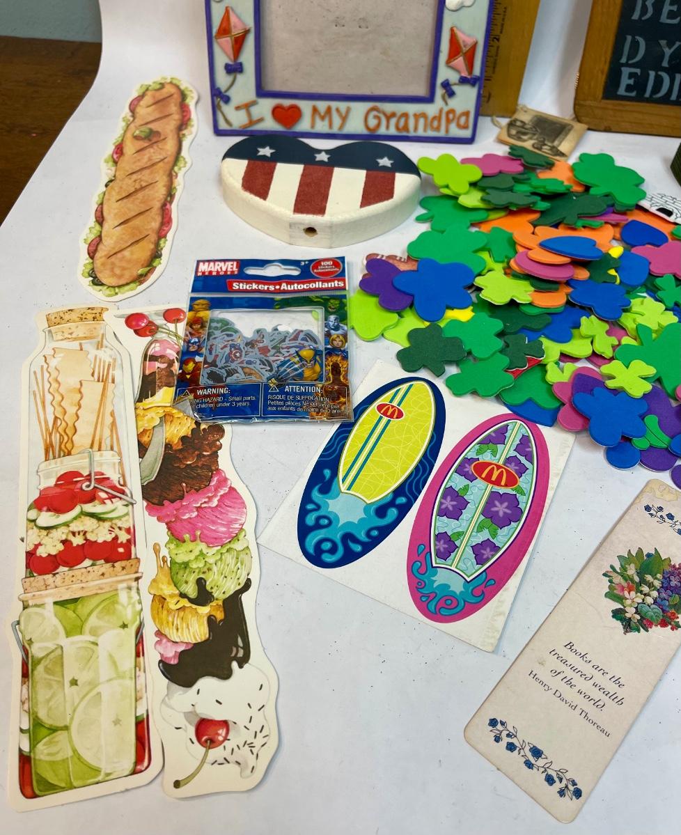 Misc. crafting & decor lot - stickers, clhalk-board, frame, etc.