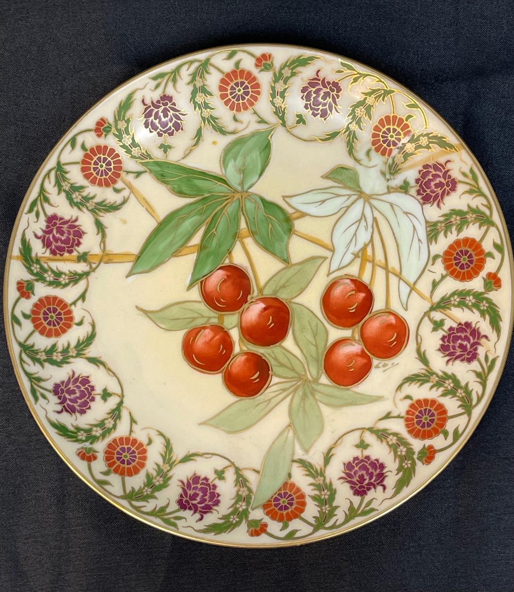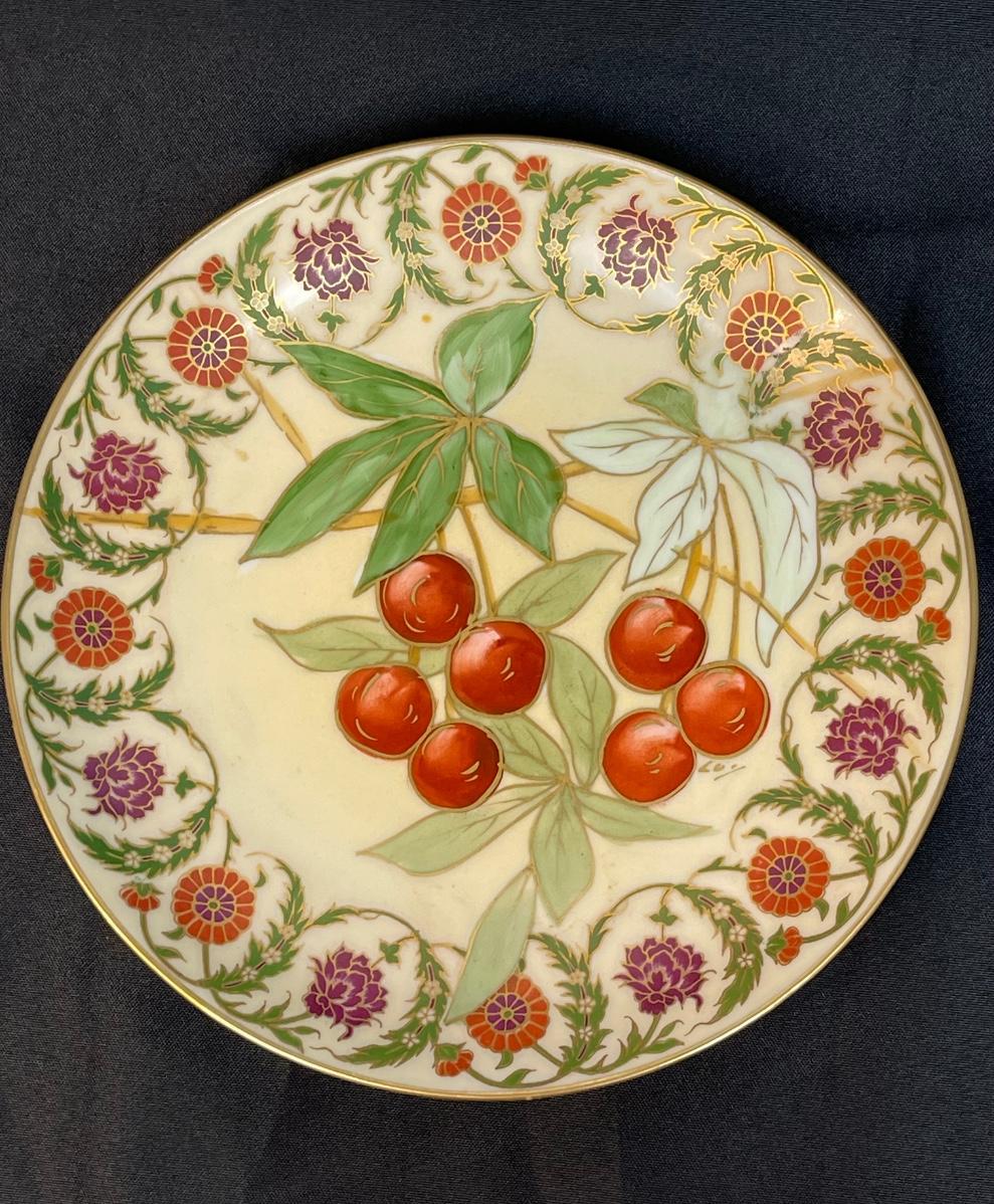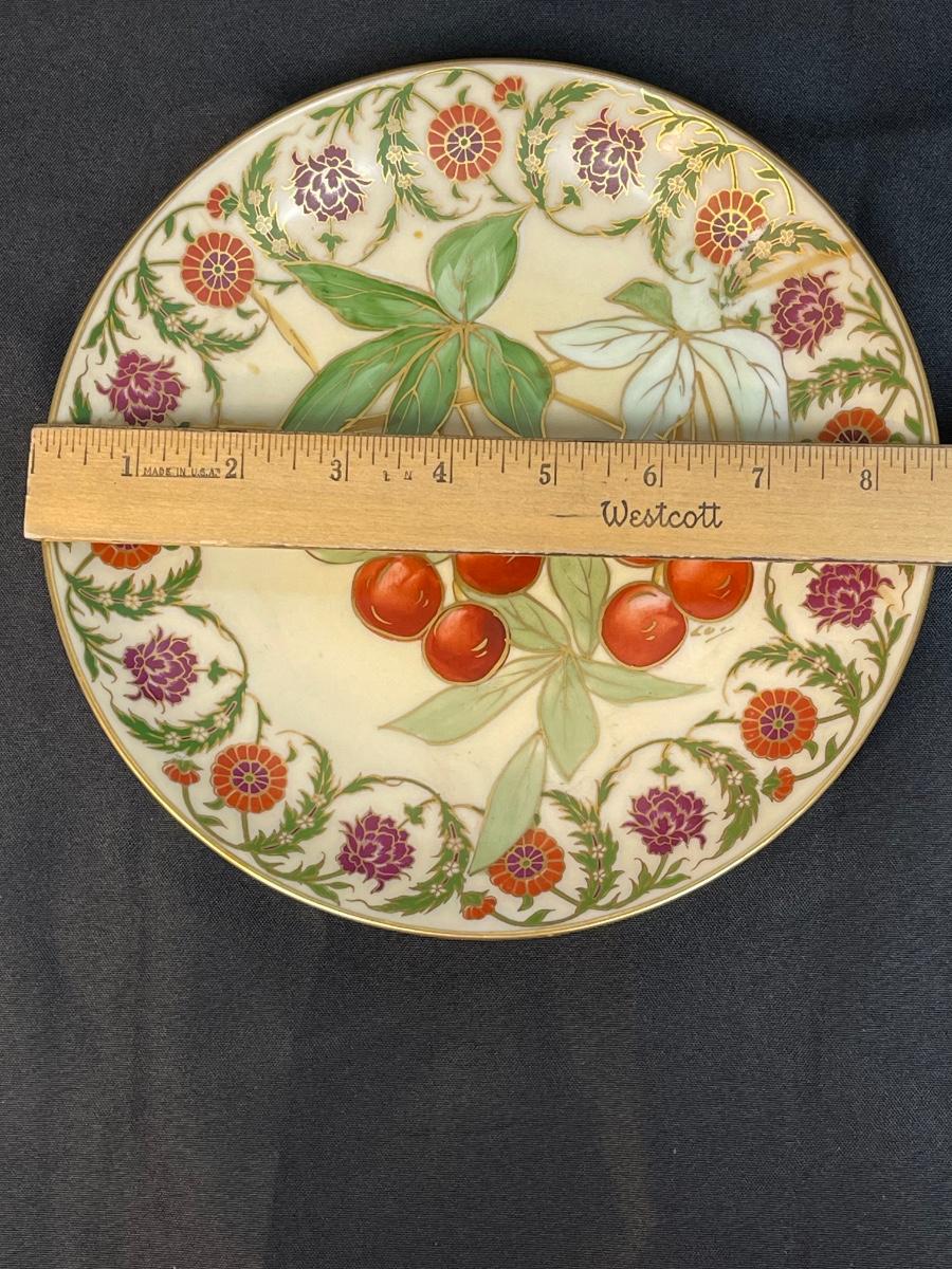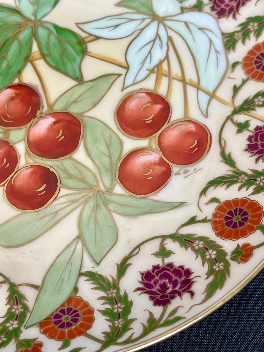 Hand-painted Cherries Leaves Flowers Vintage Flambeau Decorative Plate Limoges France
