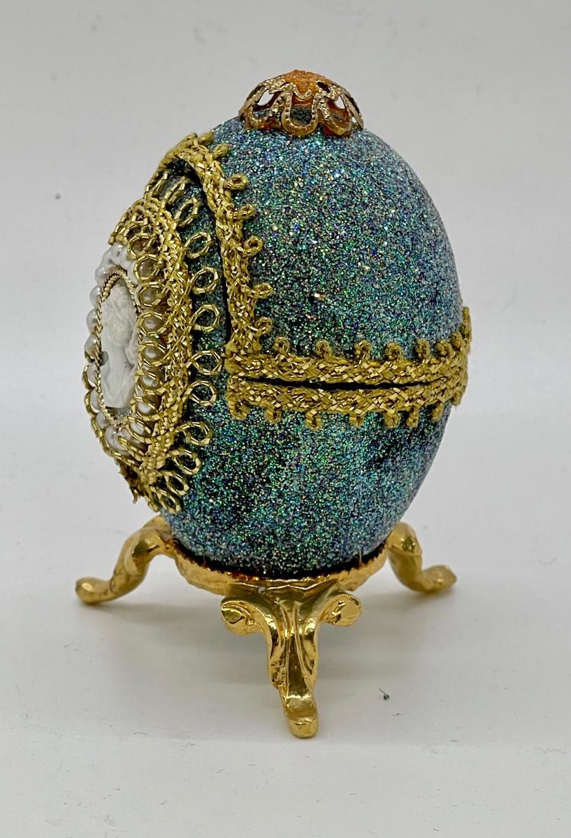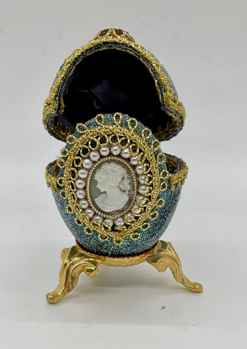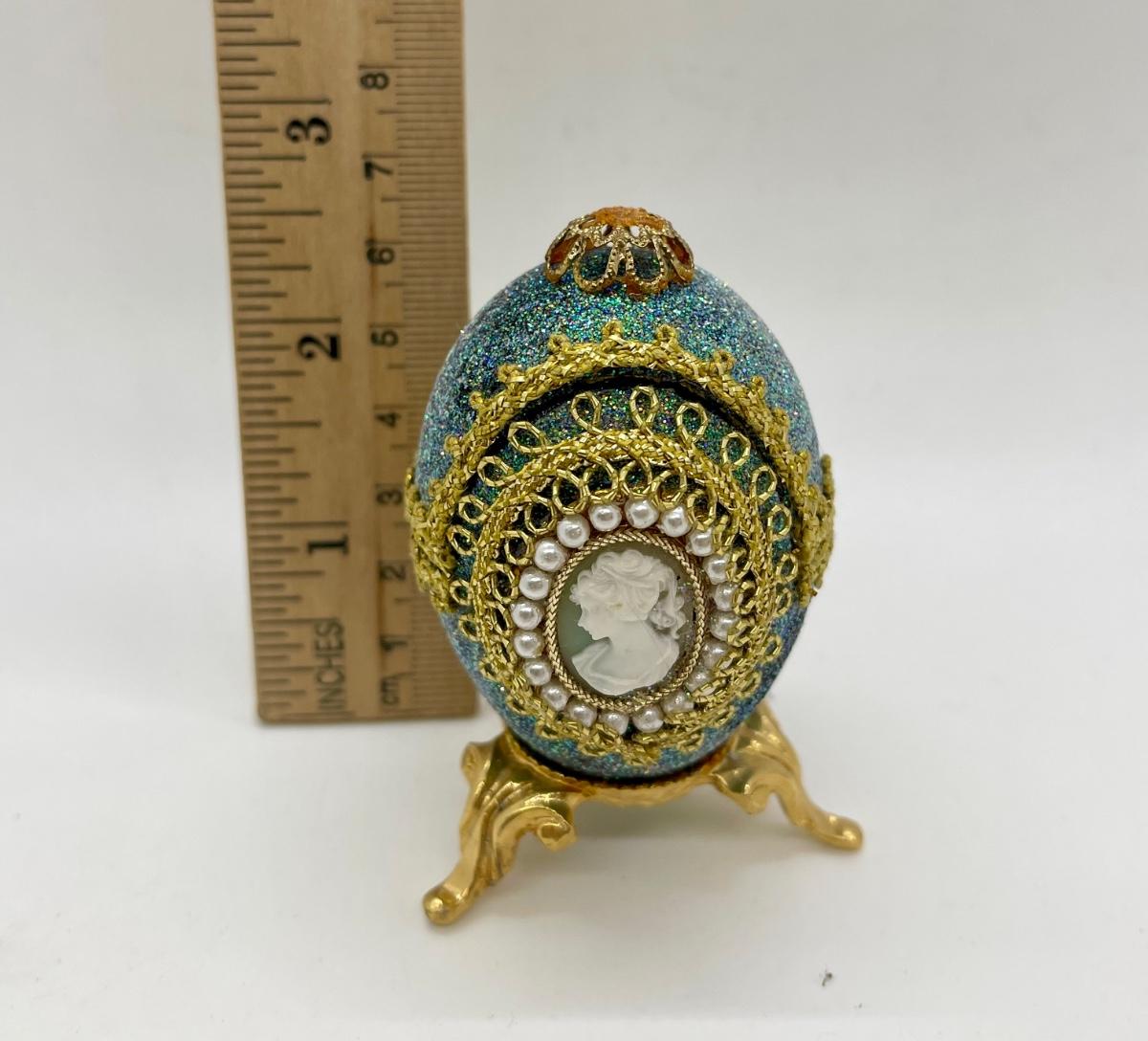 Vintage Heavily Decorated Cameo Egg Trinket Box Hand Made