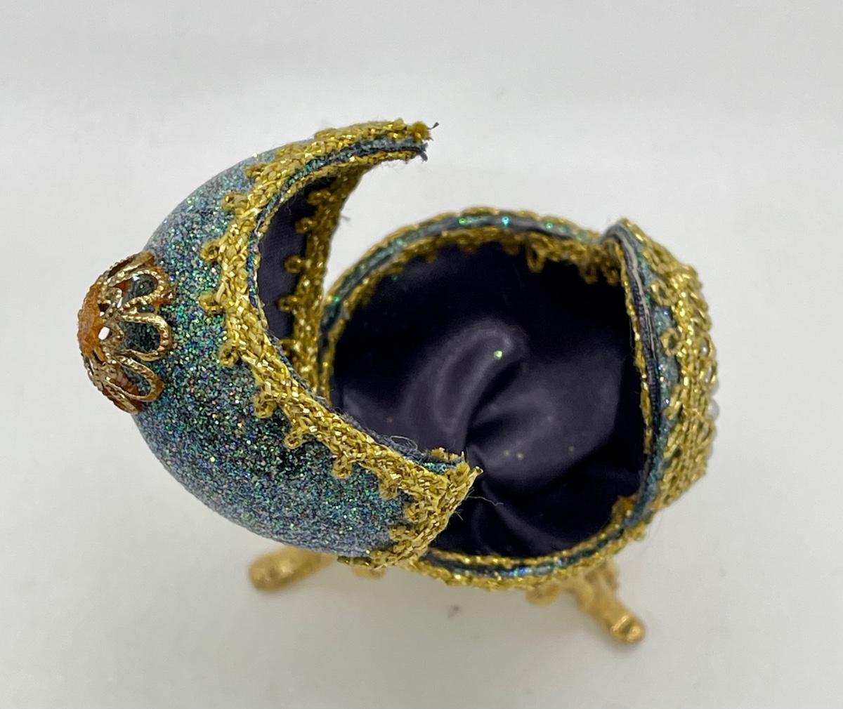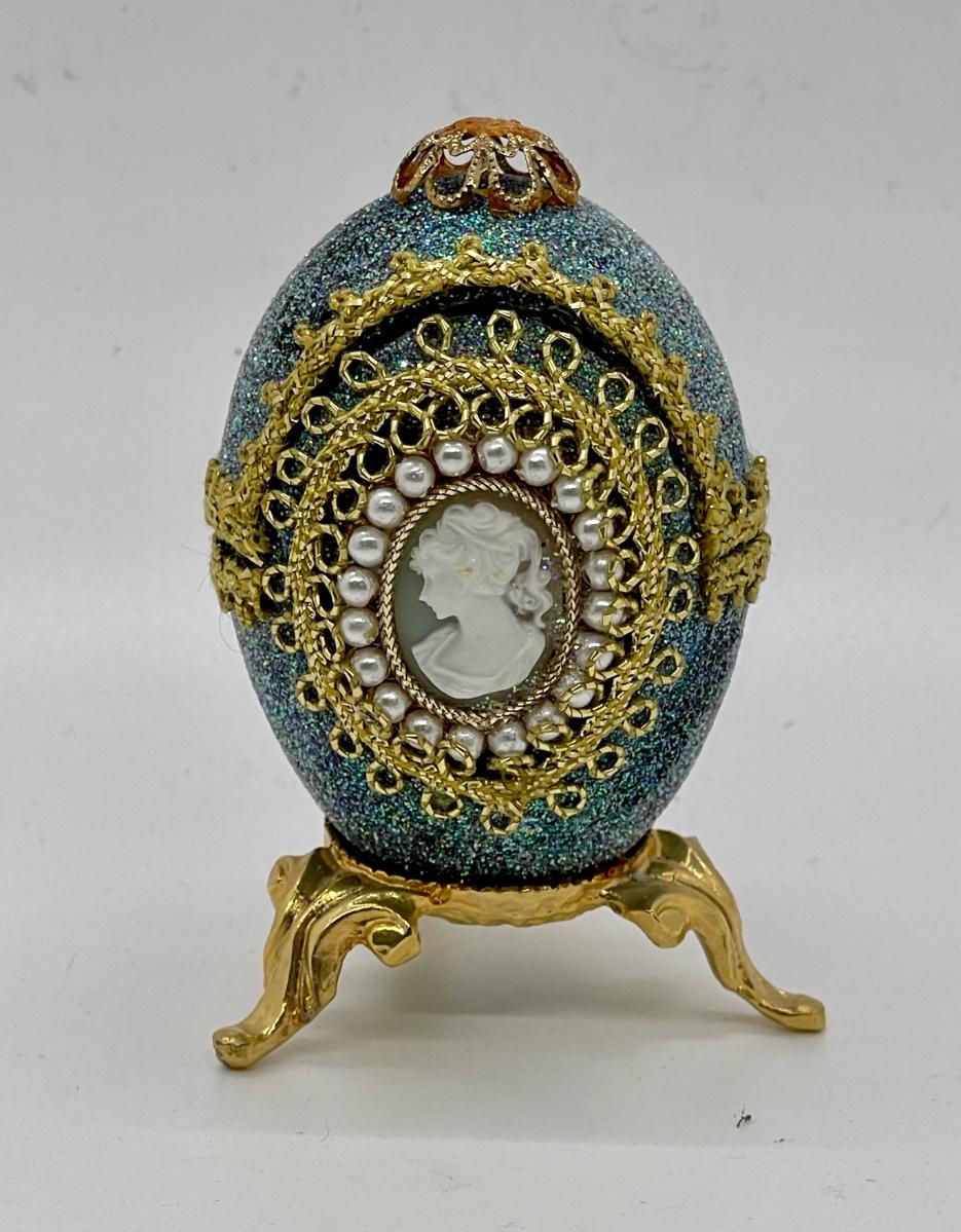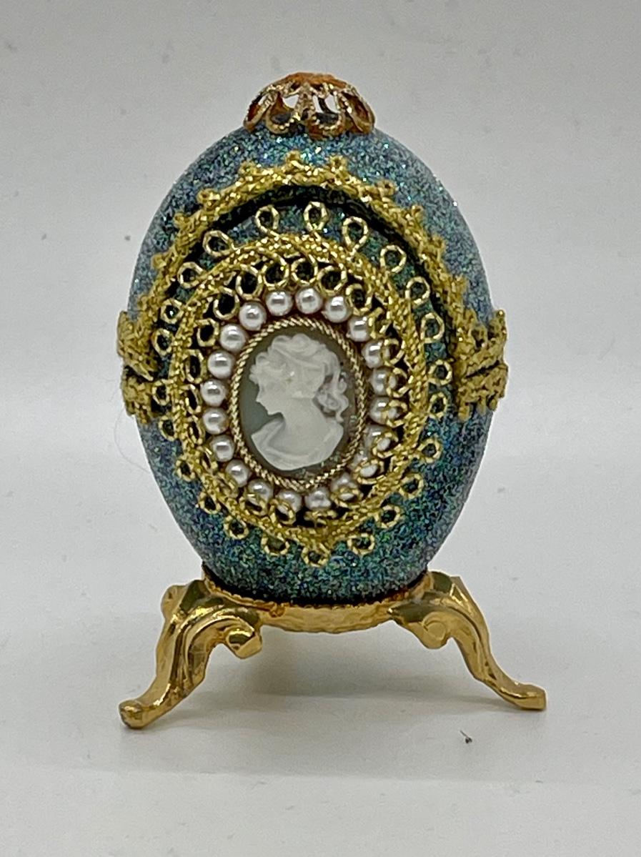 Vintage Heavily Decorated Cameo Egg Trinket Box Hand Made