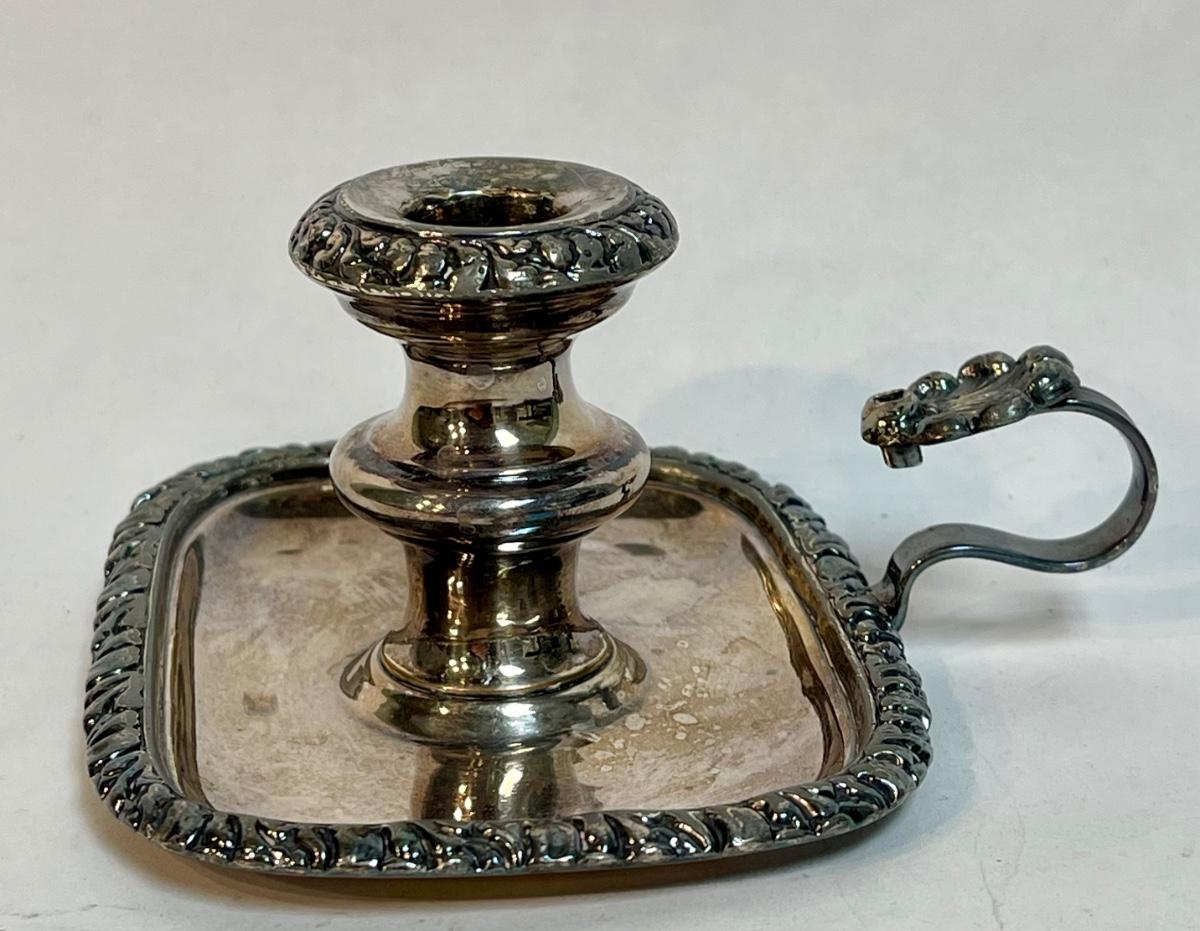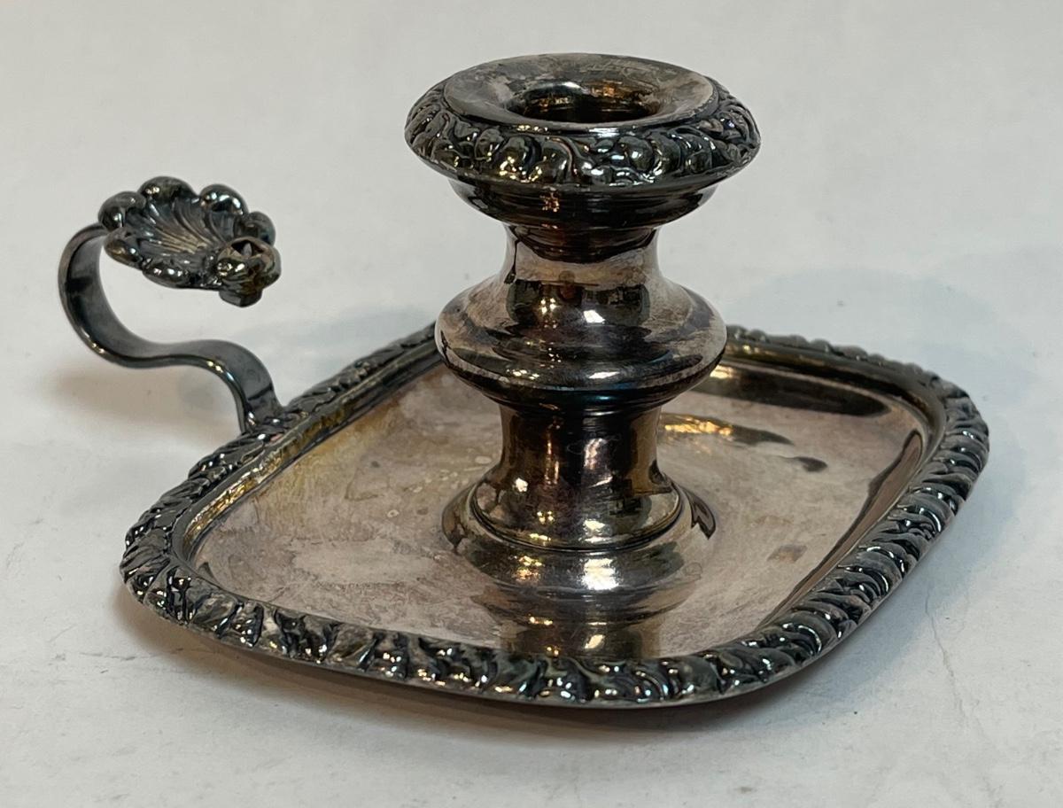 Silver Plate Finger Hold Chamber Candlestick Taperstick
