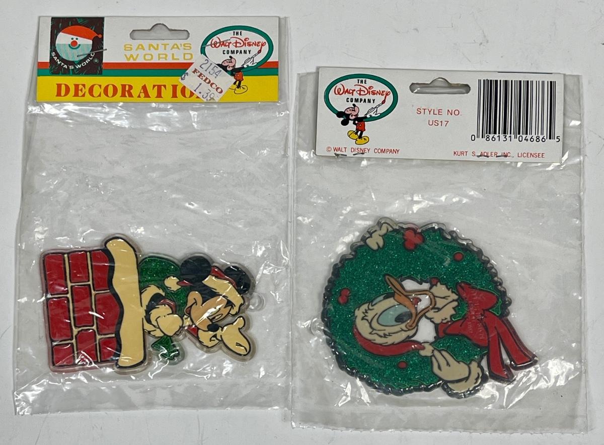 The Walt Disney Store NEW in pkg Christmas Ornaments Mickey Mouse & Donald Duck