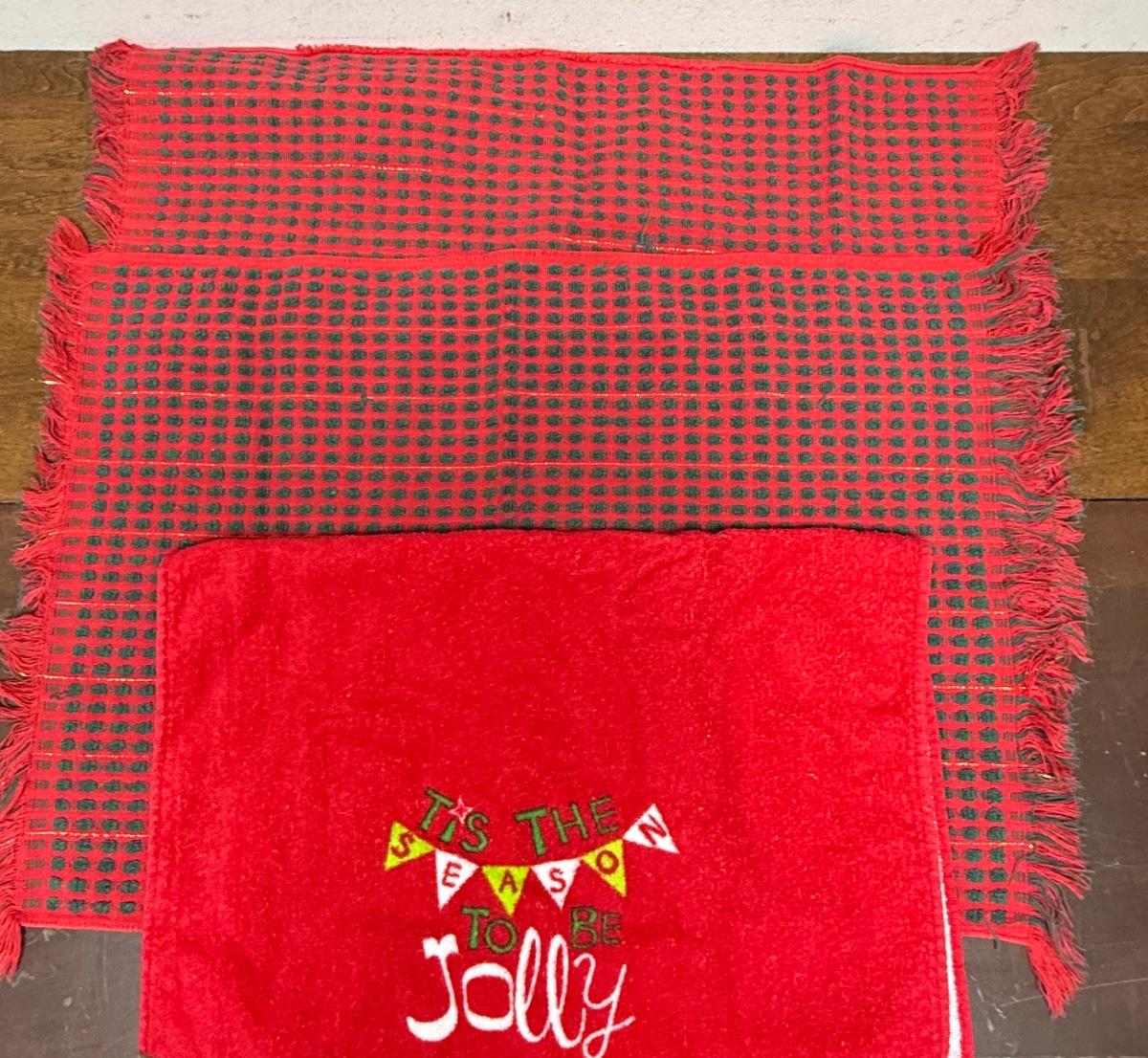 Checkered Dishtowels & 1 bathroom Hand-towel.