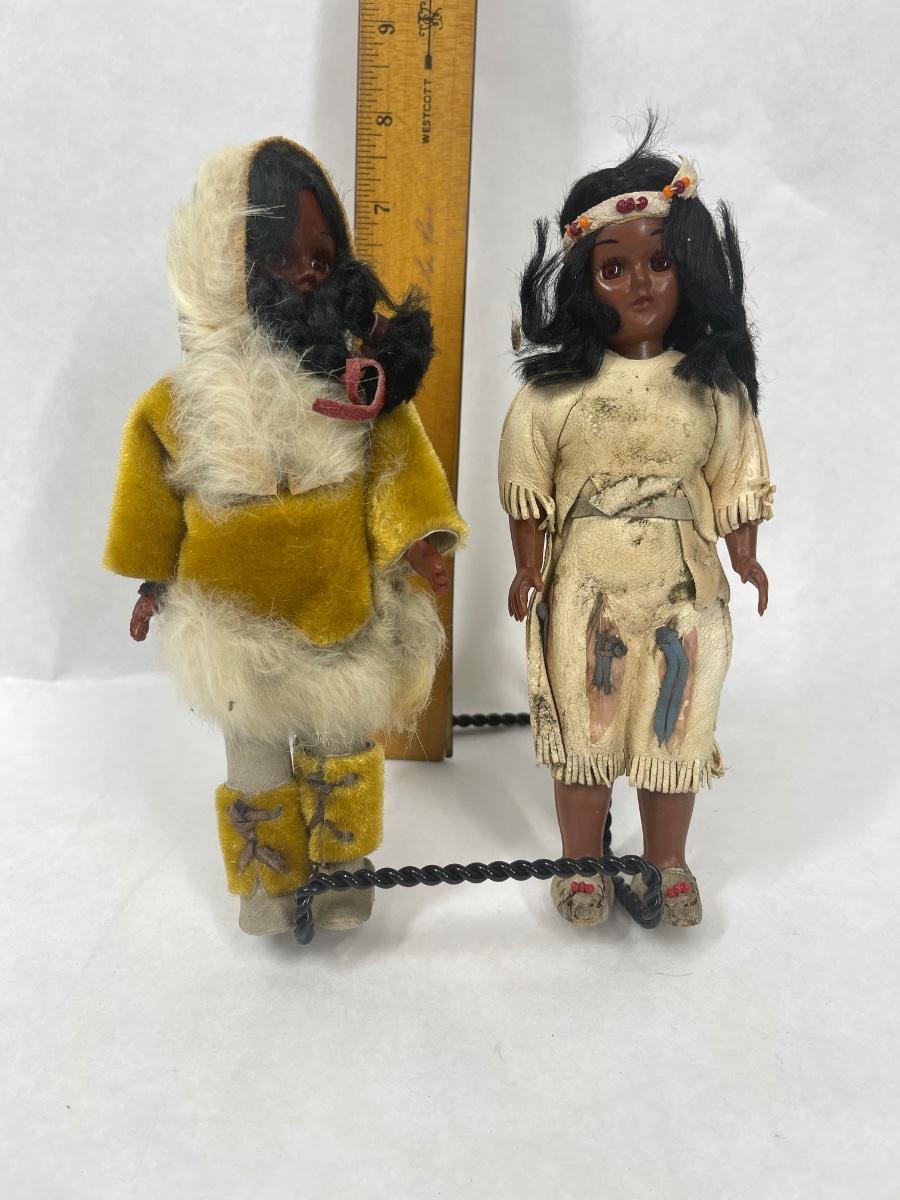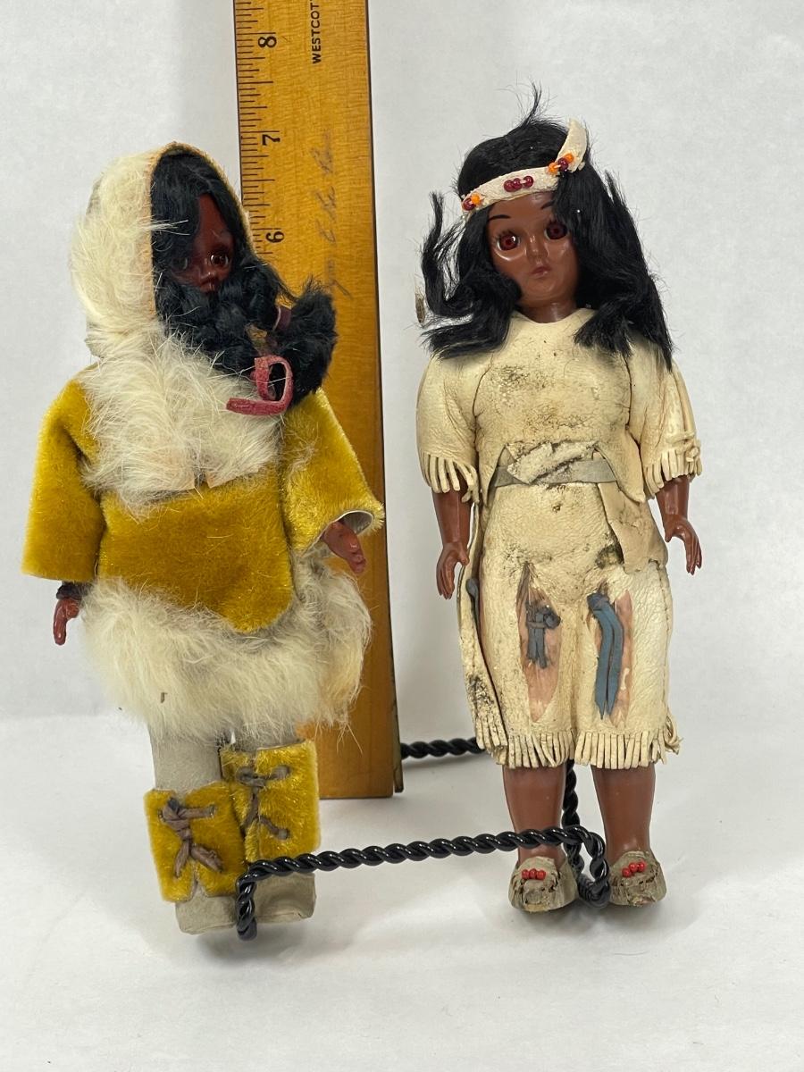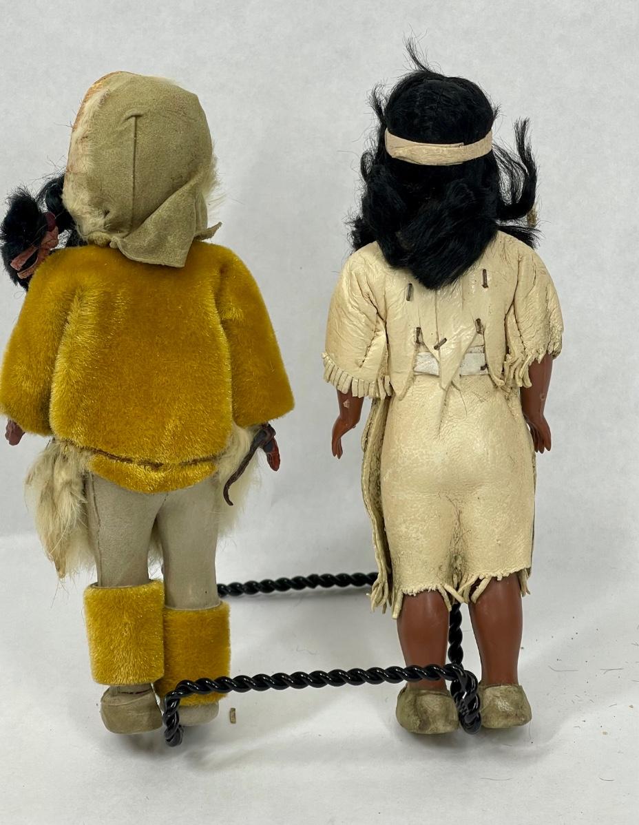 Pair of Native American Eskimo Inuit Doll Suede Moccasins Fur Sleepy Eyes