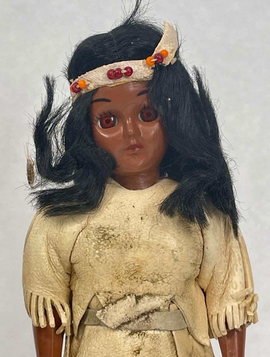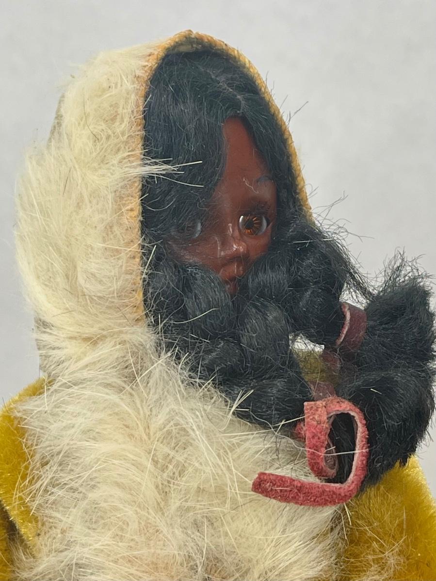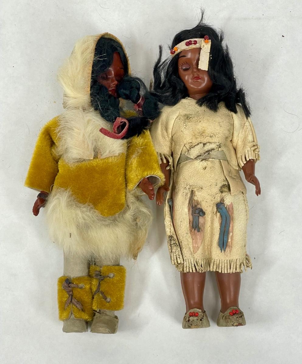 Pair of Native American Eskimo Inuit Doll Suede Moccasins Fur Sleepy Eyes
