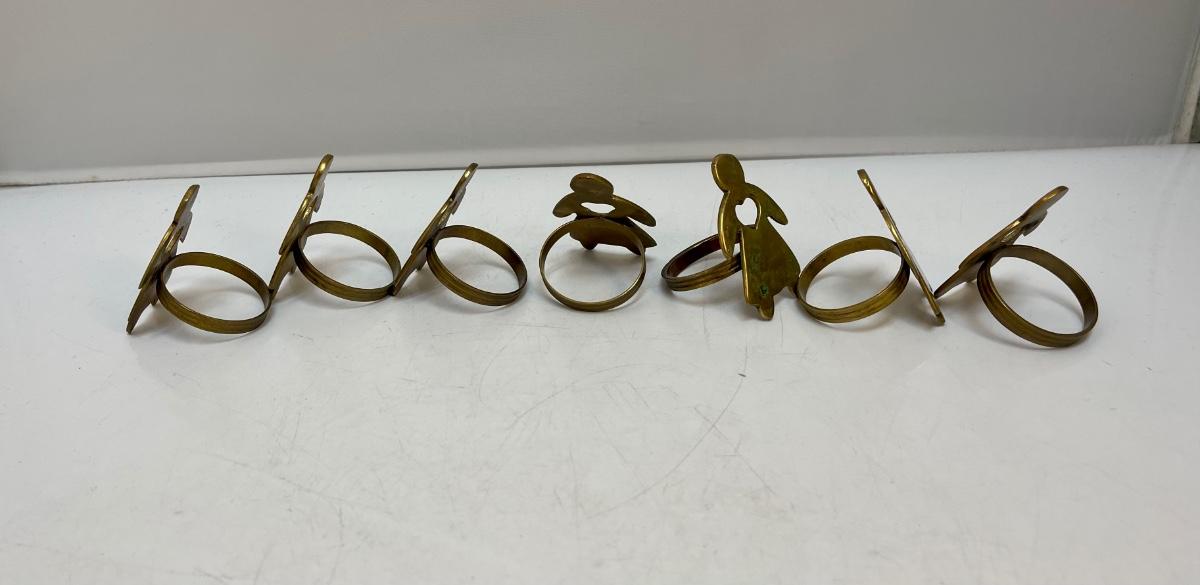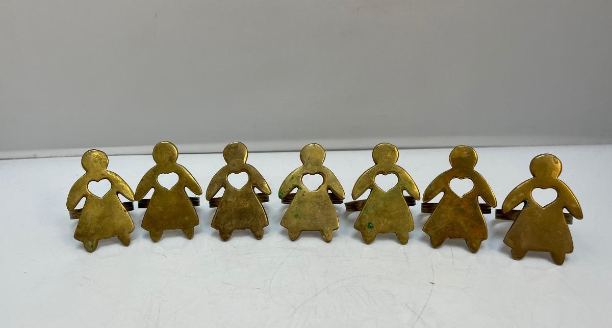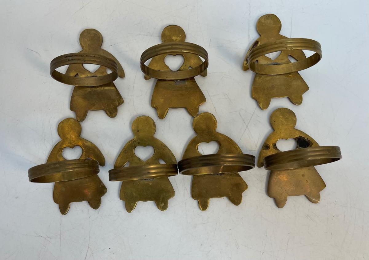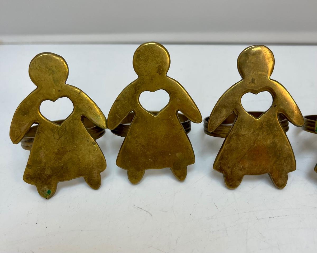 Brass Tone Metal Folk Art Style Woman with Heart Napkin Rings
