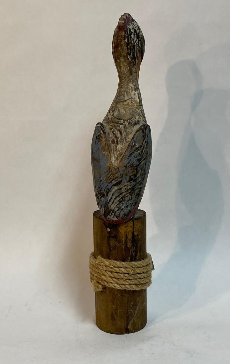 Carved Wood Bird Sculpture Painted Pelican