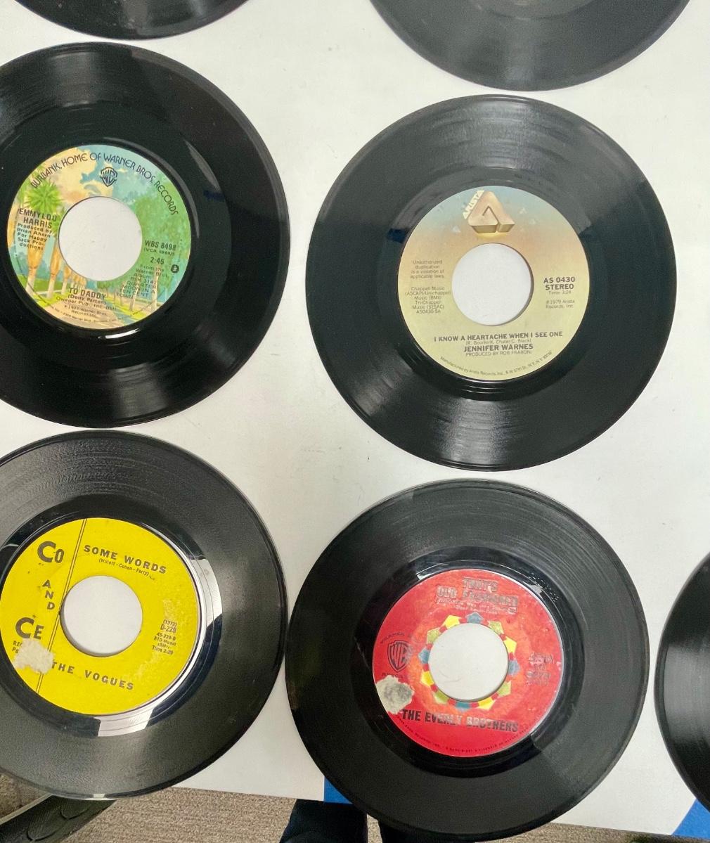 Vintage Vinyl 45's Lot #1 - many artists/labels Emmy-lou Harris, Everly Brothers, The Vogues, etc