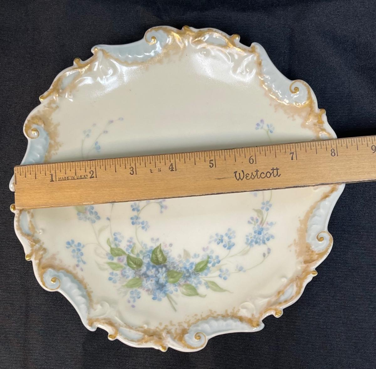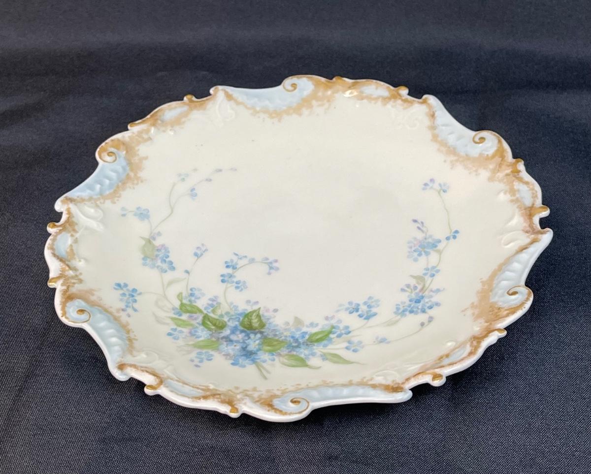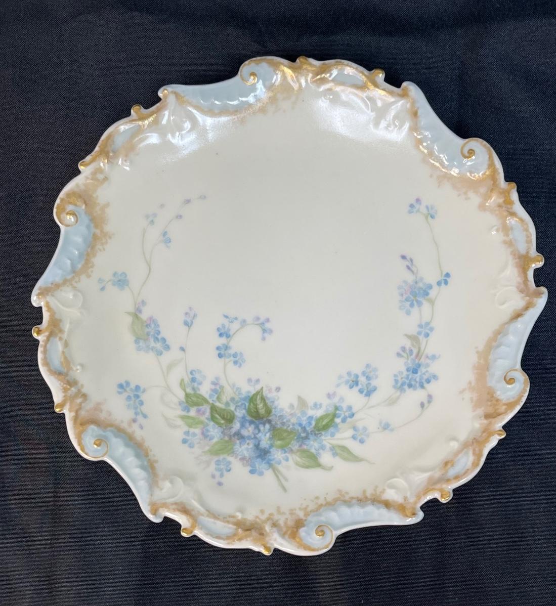 Decorative Limoges Plate Blue Flowers Gold Gilt 8" diameter