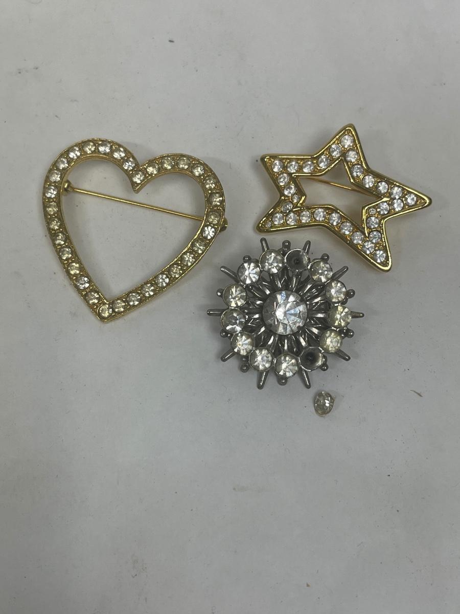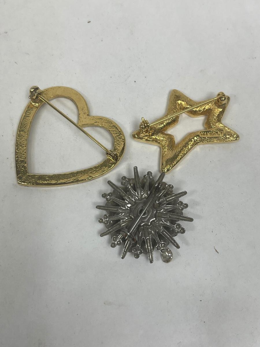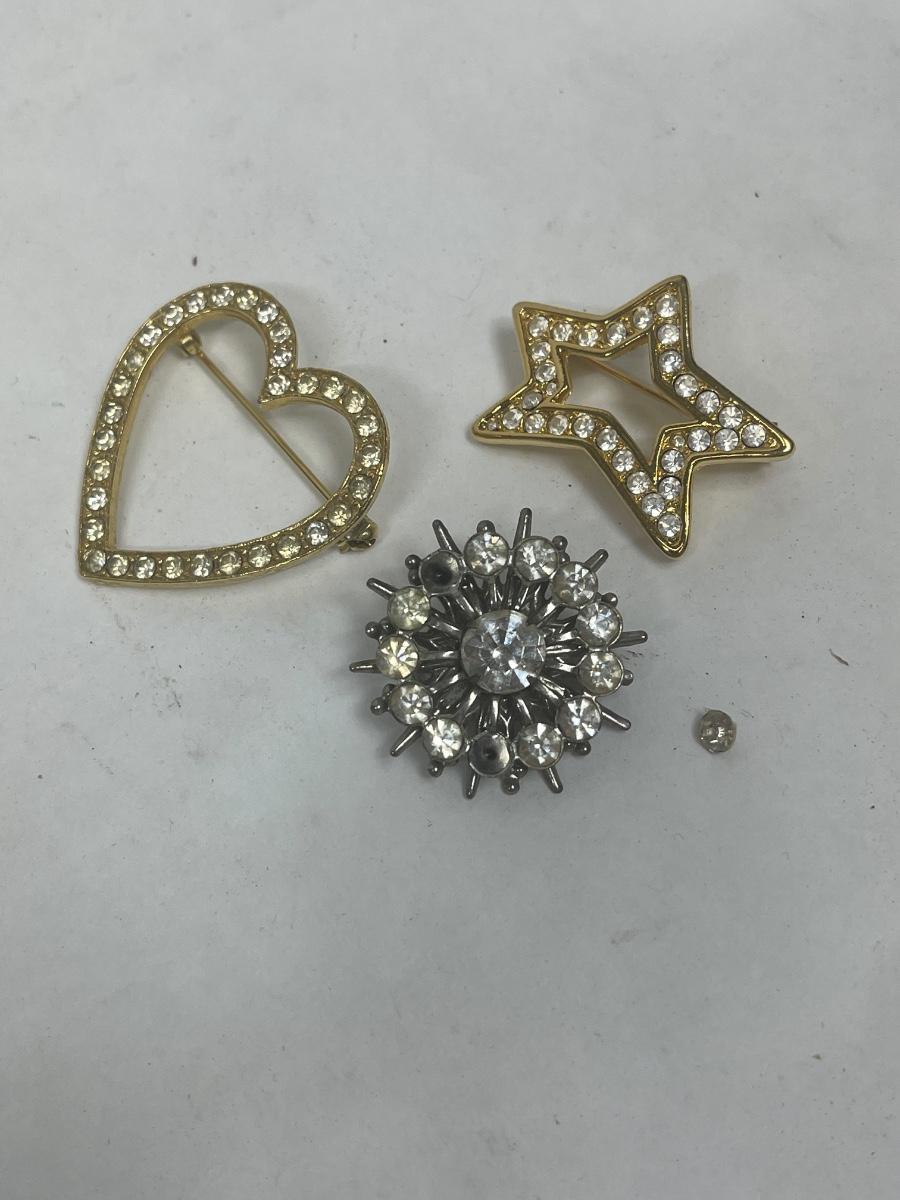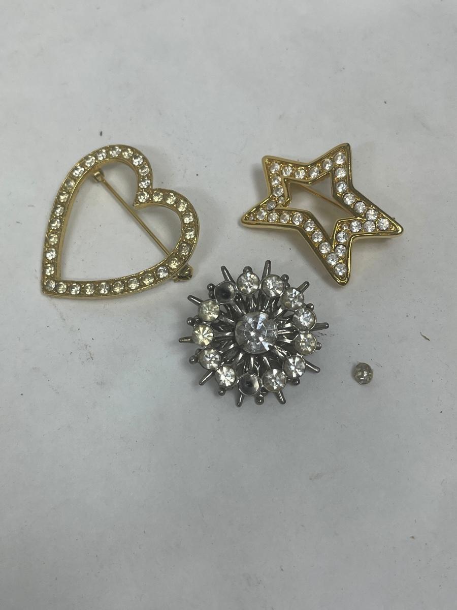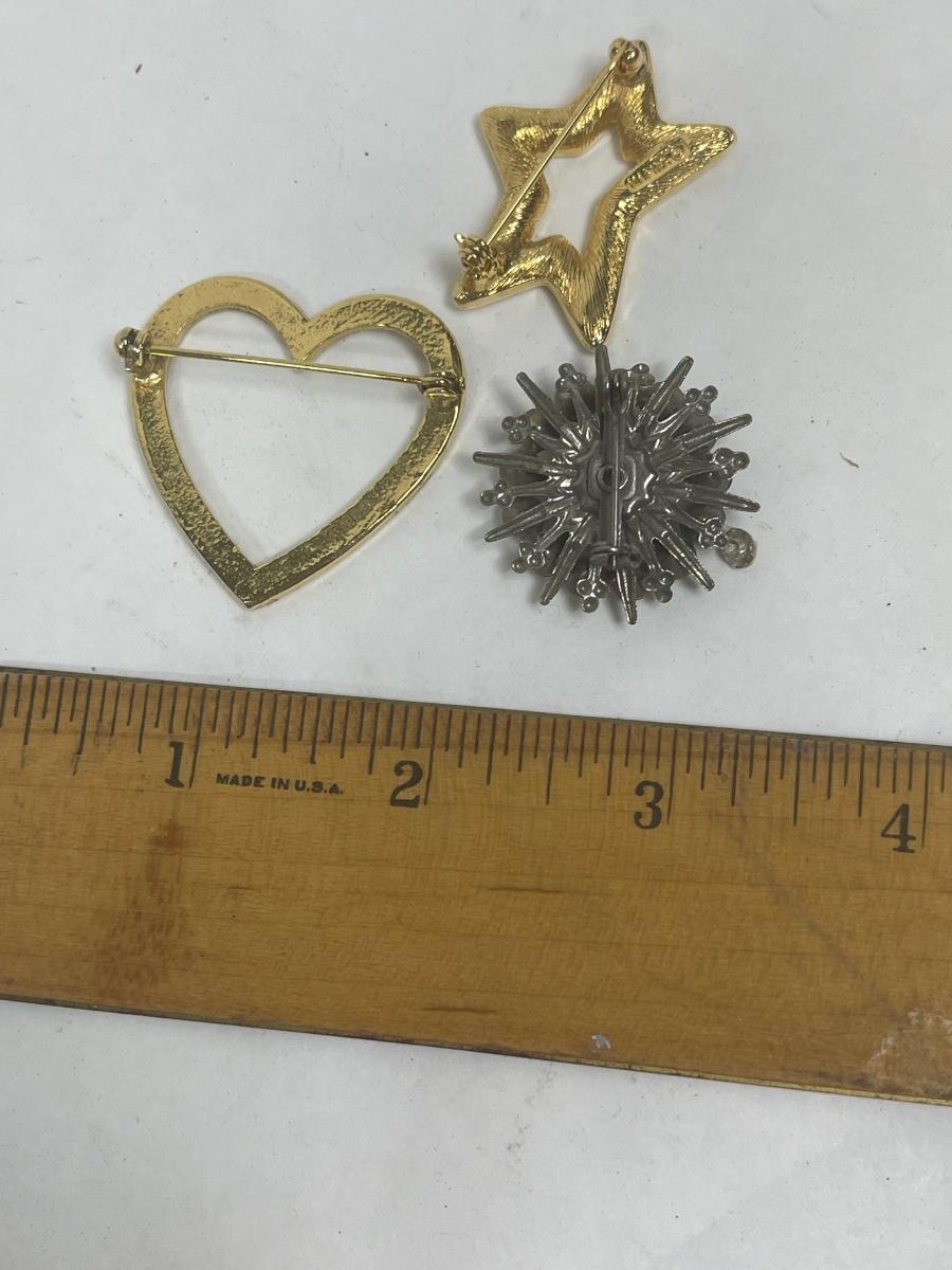 Gold-tone pins are in good condition. Silver tone pin has 2 missing stones, 1 is loose in the bag.