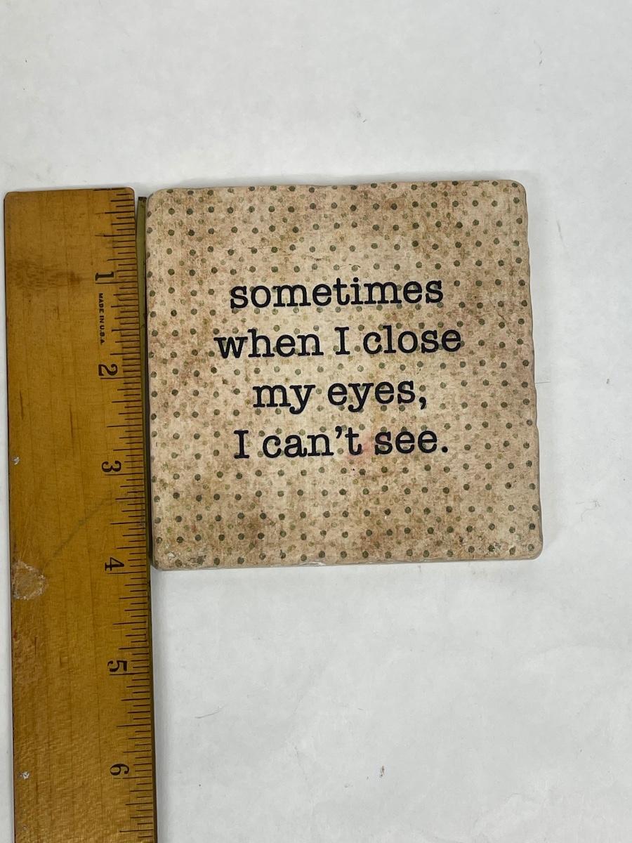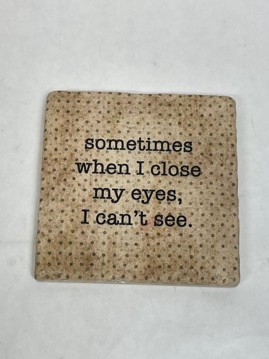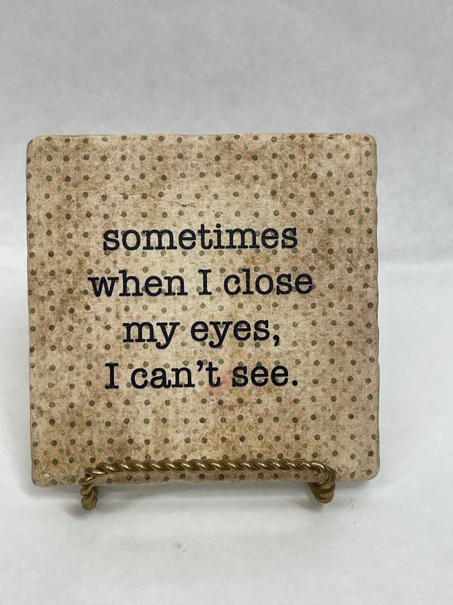 Tile decorated with saying "sometimes when I close my eyes ......"