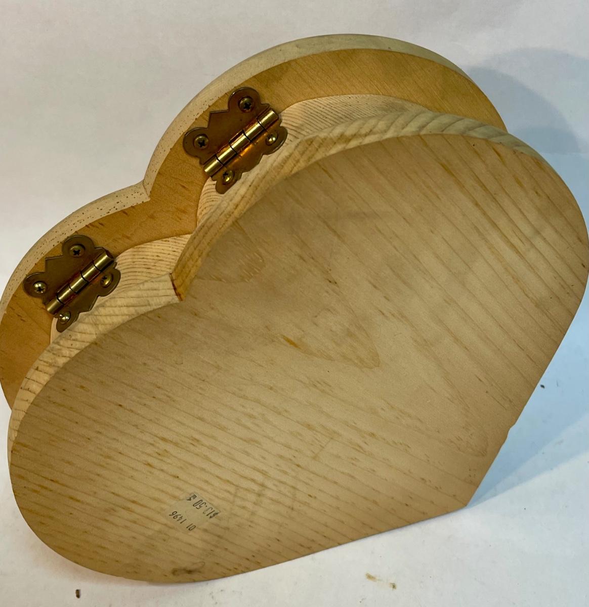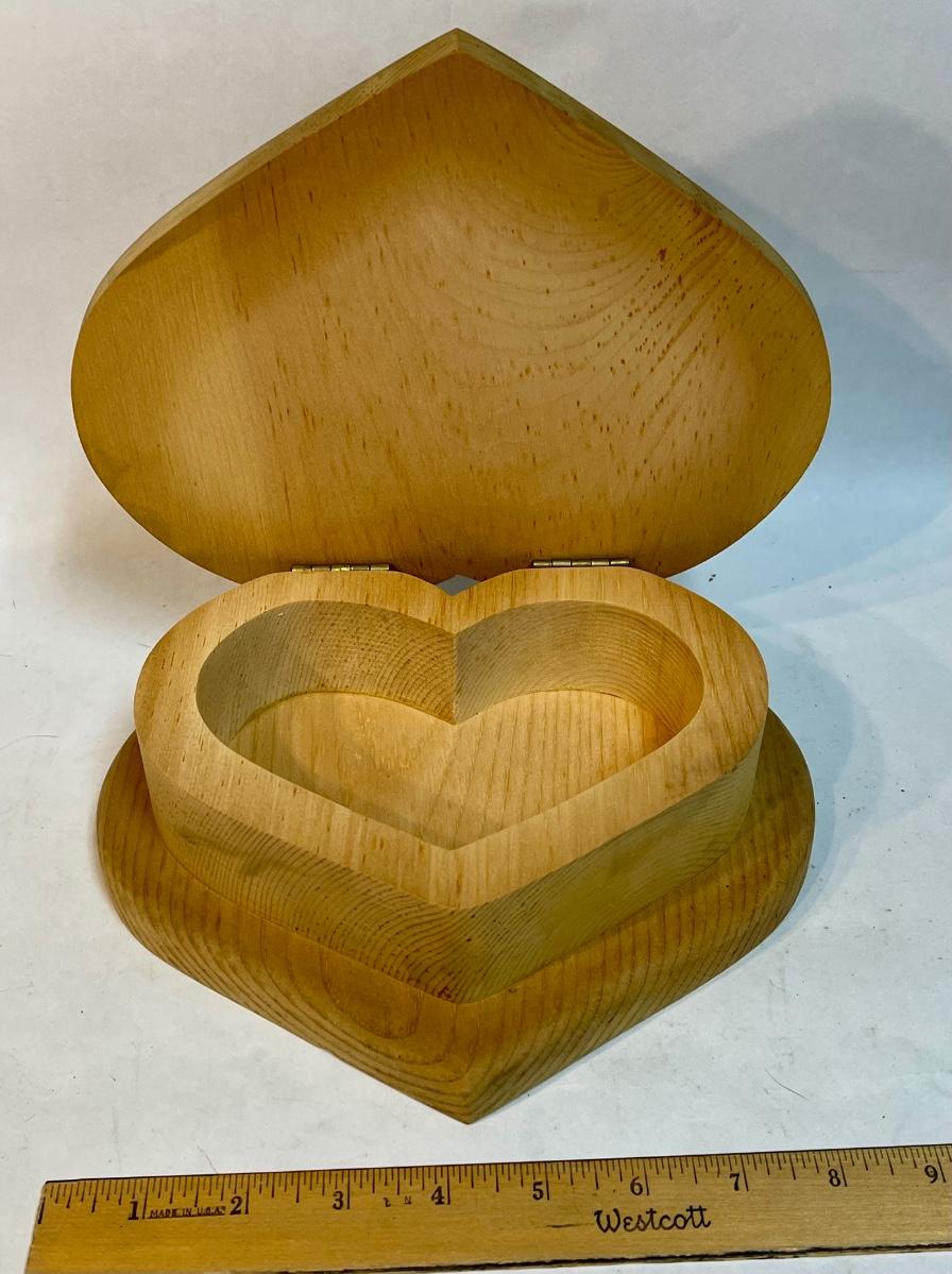 Hinged Box - heart shaped Raw Unfinished Wood Craft Project Piece (1) pc Lot #wood11