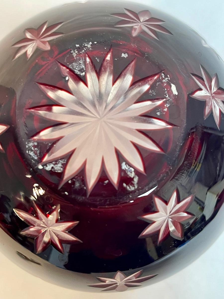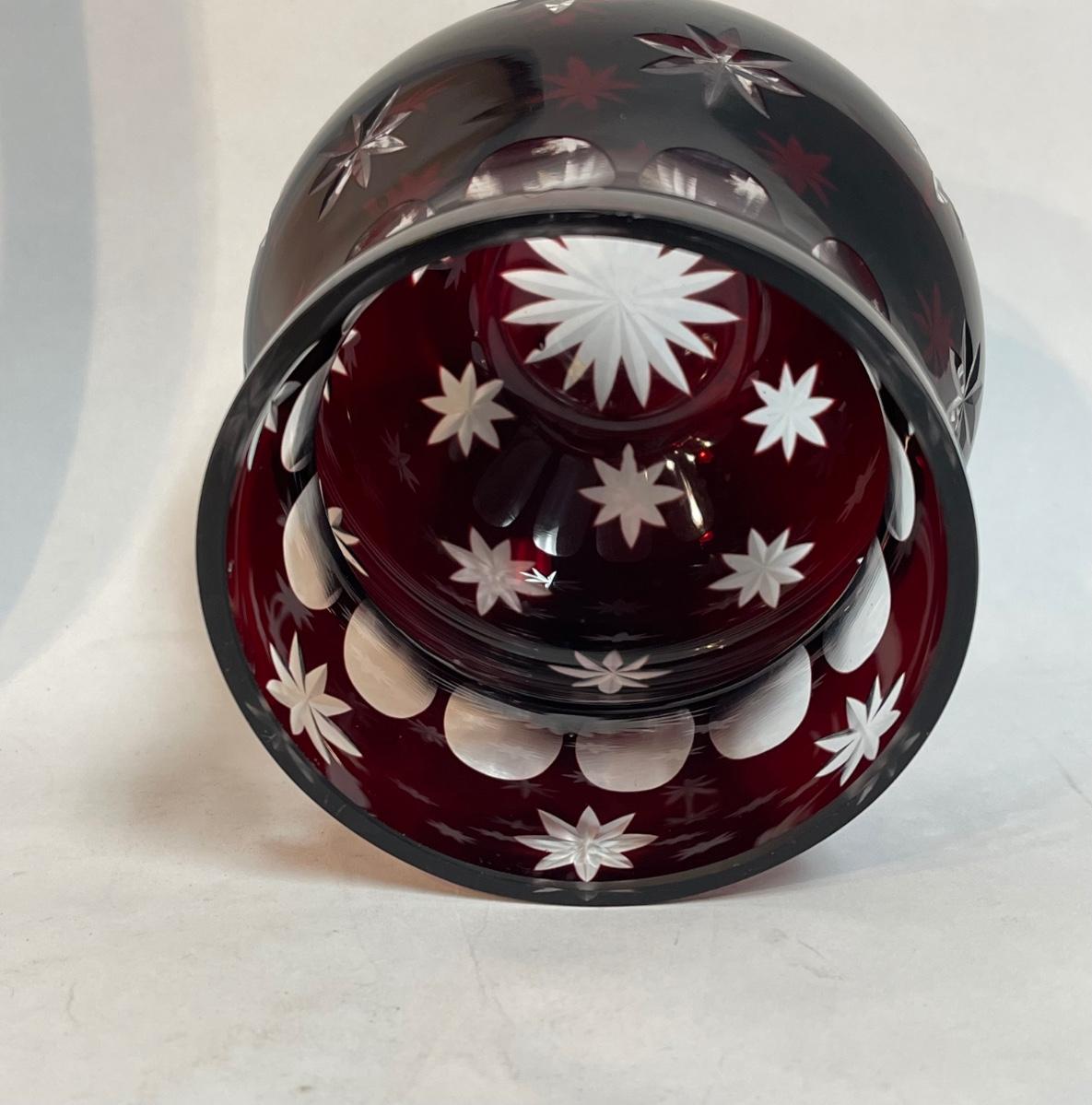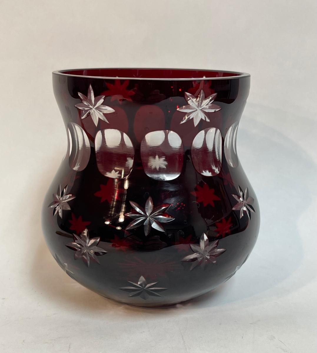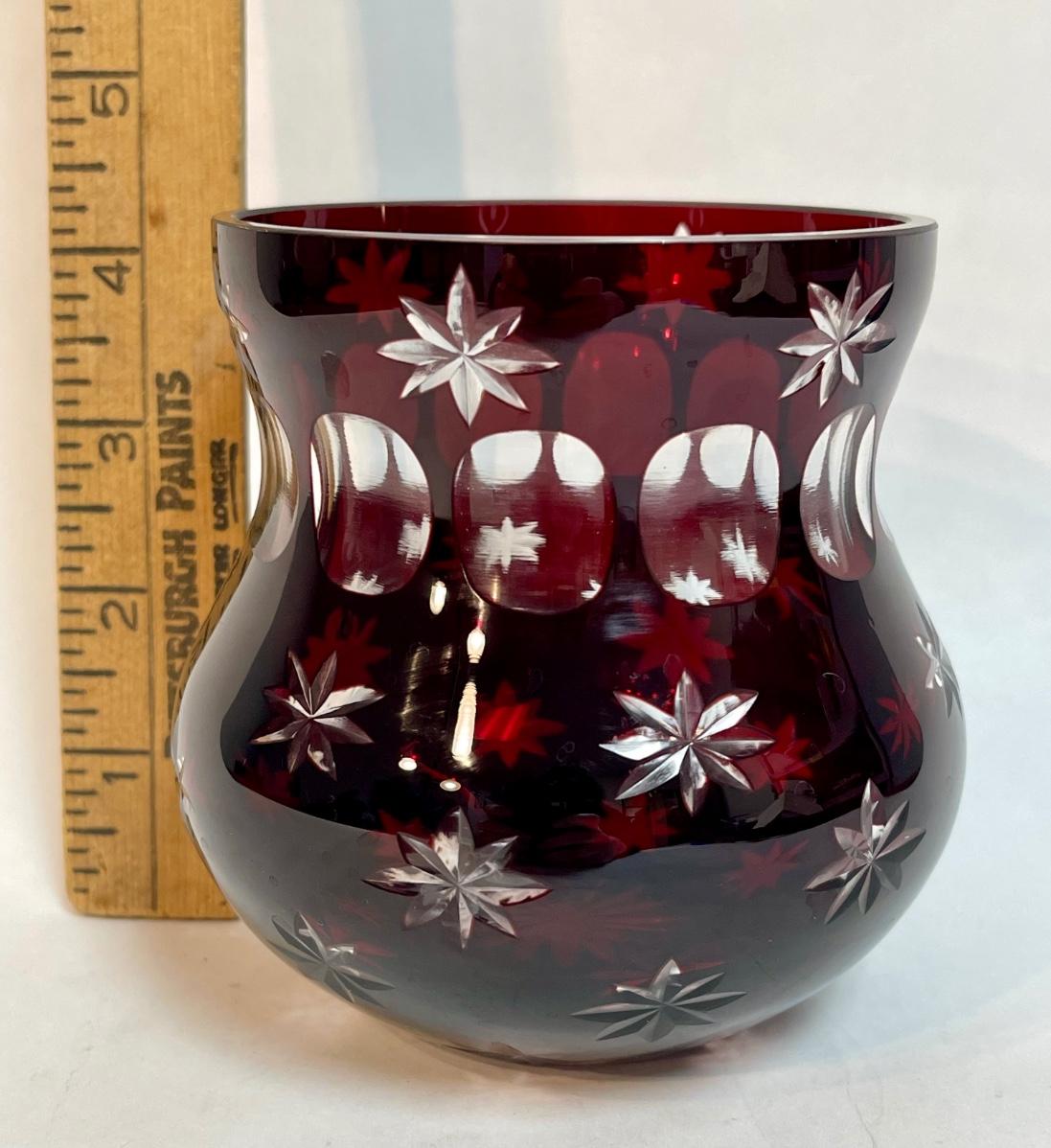 Vintage Bohemian Crystal Candleholder or Vase Ruby Red Cut to Clear