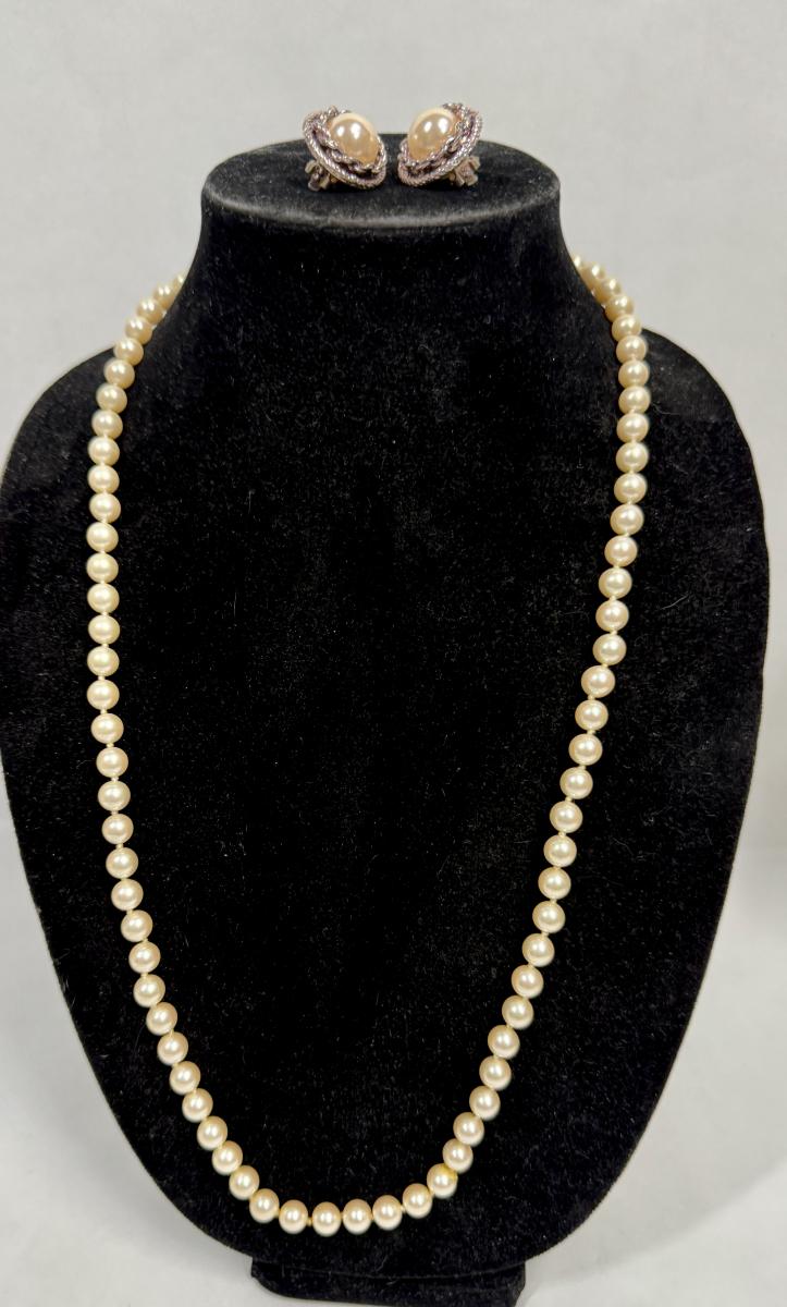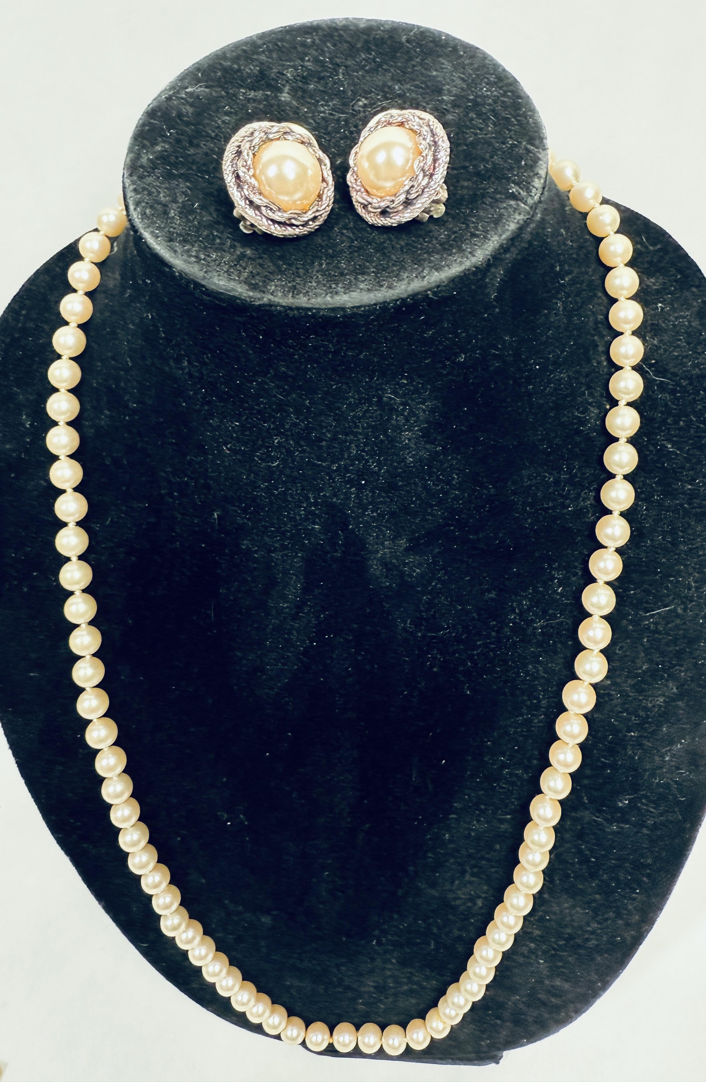 3 pc Vintage Jewelry set Faux Pearl Necklace and Earrings