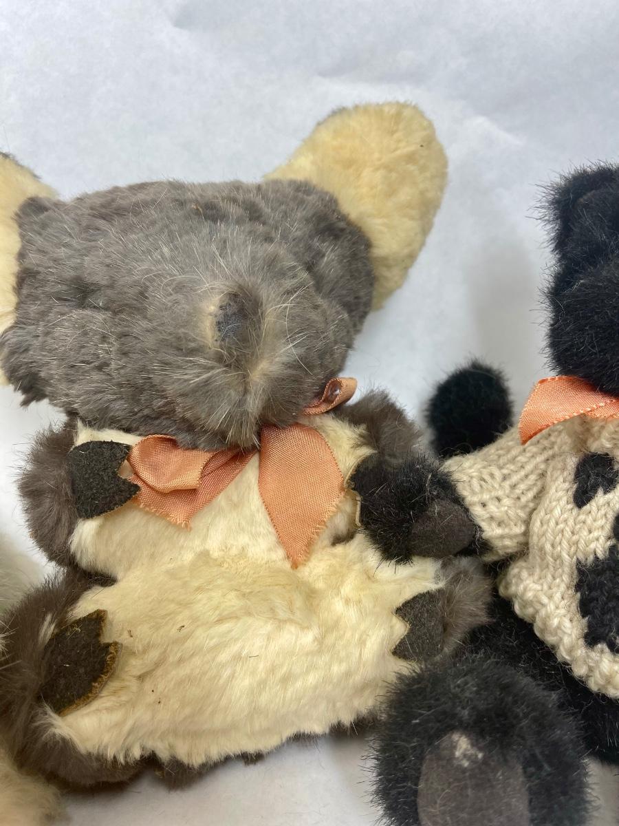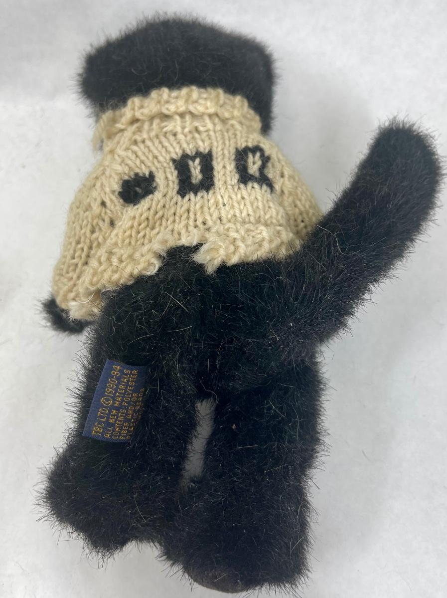 Very old and very played with Cat & Panda? Black cat with Jack o Lantern Pumpkin sweater.